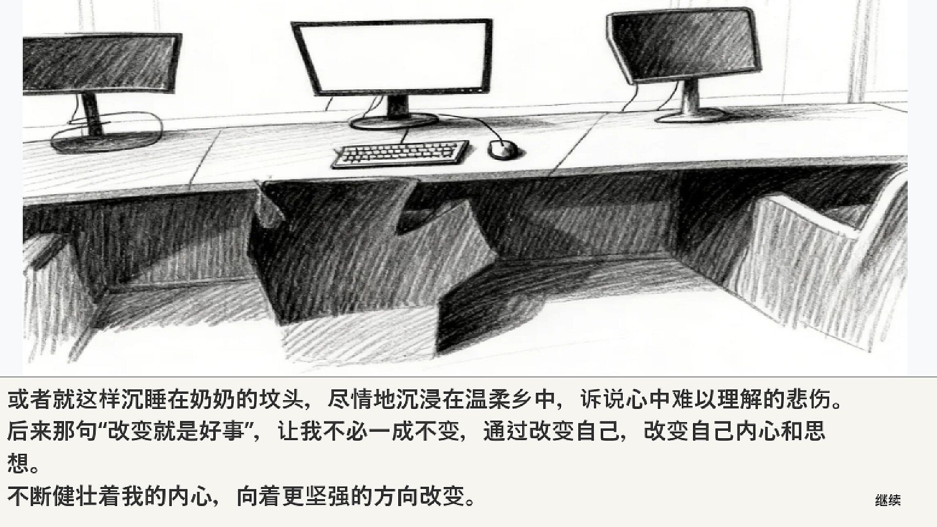 这是一款游戏时长约半个小时左右的视觉小说,讲述了一个少年在饱受中式教育苦楚写下的内心独白故事。