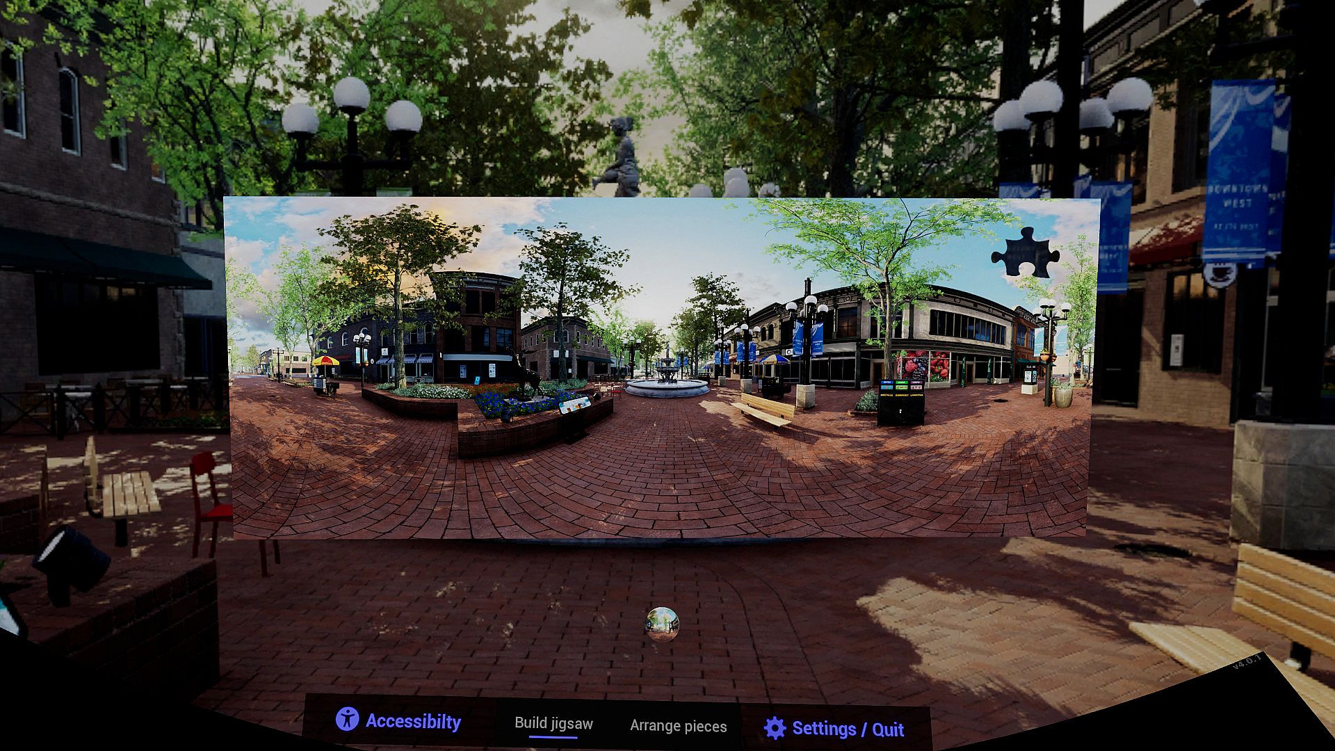 Only possible in VR, find yourself stood inside the jigsaw. Use your hands to precisely place your pieces as you build the spherical puzzle. Rotate the jigsaw and scene to see it from different angles or simply walk around the jigsaw. Traditional flat jigsaws are also included.