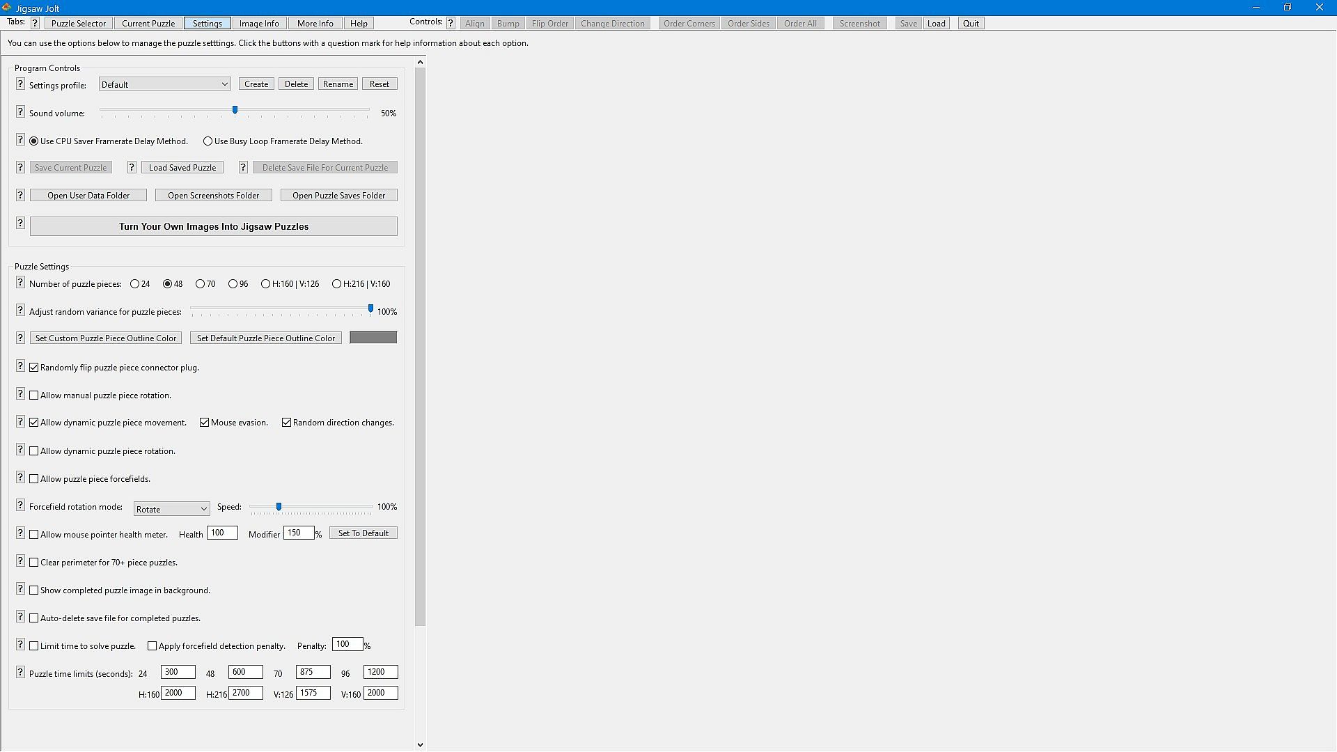 • Manual and dynamic puzzle piece rotation can be enabled, along with dynamic puzzle piece movement with optional mouse pointer evasion.