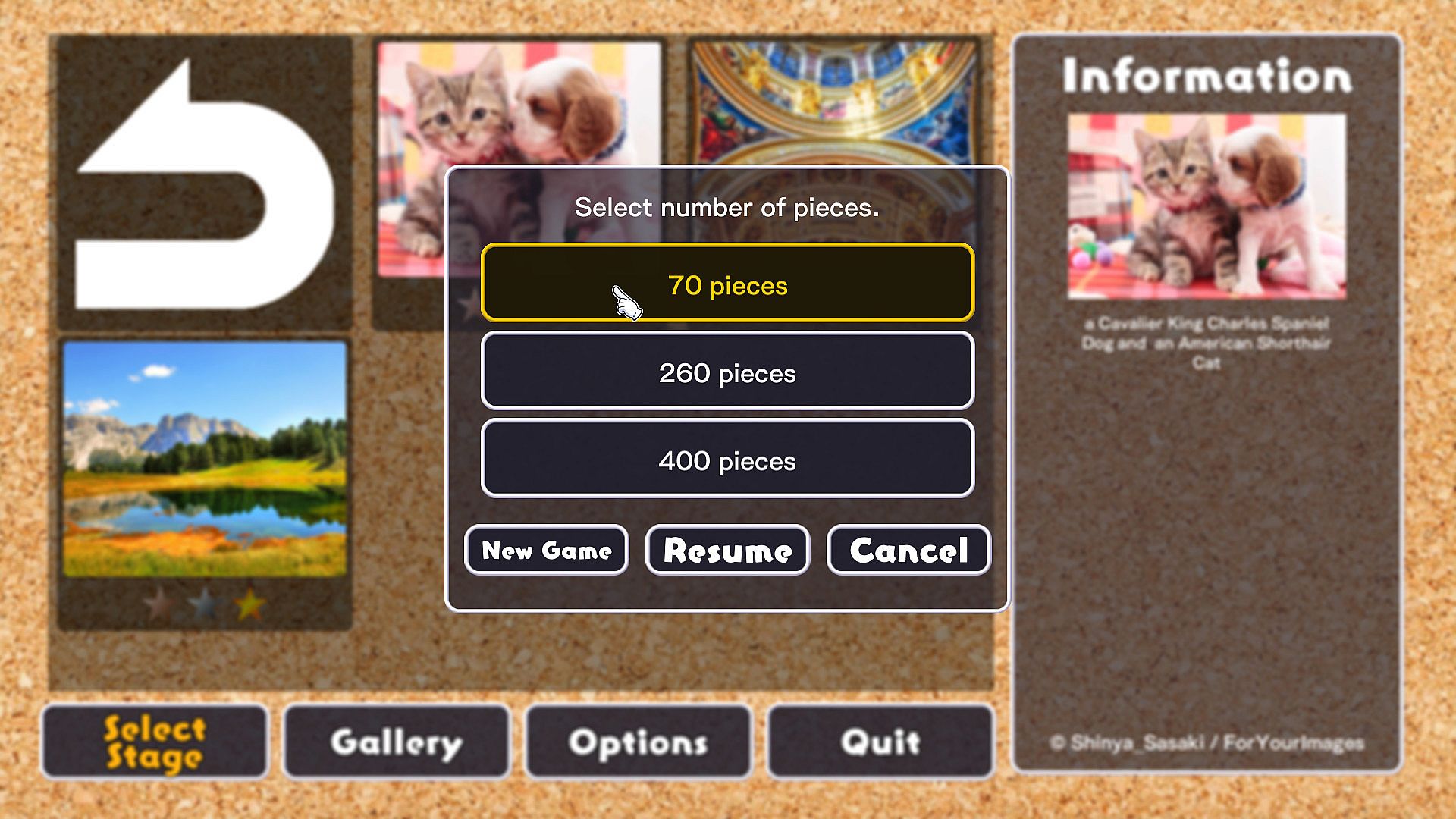 • For each jigsaw puzzle, 3 difficulty levels can be set