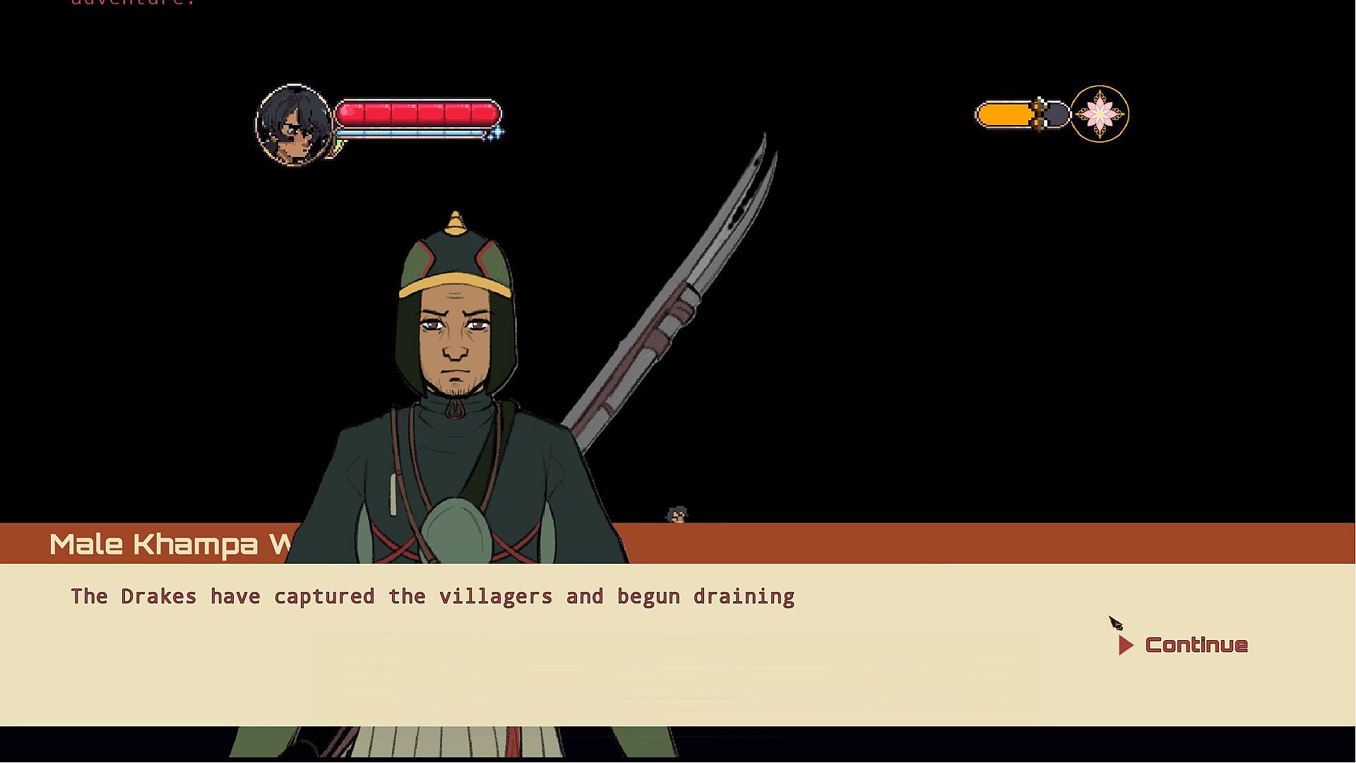 Jigten’s world is set in a post-apocalyptic future, with survivors inhabiting the Tibetan plateau and surrounding Himalayan regions. Our protagonist Mingma, a girl born into this new Medieval order, sees her world shatter when an army of dragon-machine hybrid creatures invade and bring ruin to her kingdom with eldritch technology that siphons the life force of humans. Amidst the chaos, Mingma inadvertently catapults herself through a spacetime rift, entering the Bardo, a mystical purgatory realm between life, death, and rebirth. Throughout this narrative-driven tale, Mingma’s challenges are twofold: She must not only battle the interdimensional invaders, but also her inner demons, manifesting within the Bardo as projections of her own fears and anxieties.