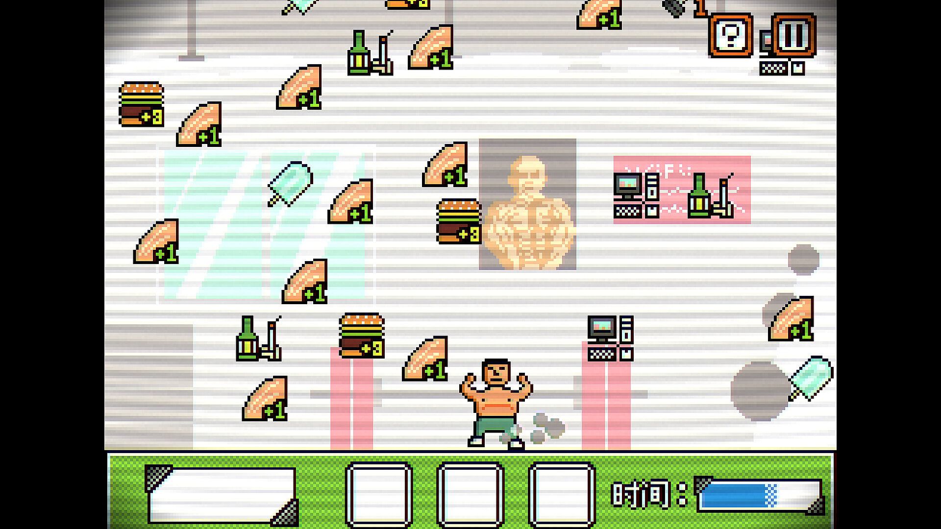 你需要让学员吃下大量的食物积累能量,然后猛击空格消耗这些能量获得巨大的肌肉!