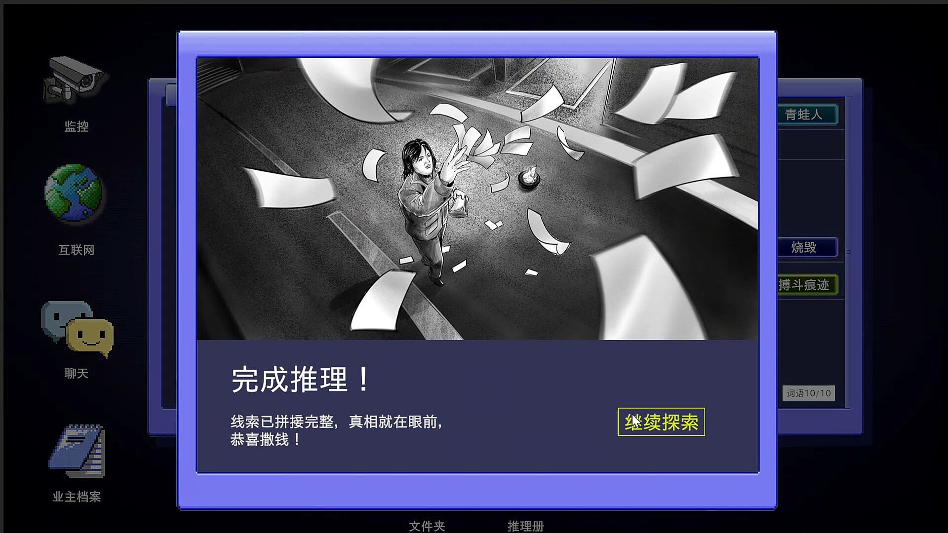 • Closed-Loop Clue Puzzles Consolidate all clues—entries extracted from surveillance, information from dialogues, and evidence from web searches—into your cluebook. When specific conditions are met, the system will automatically trigger clue associations. Drag the correct fragments of information into the deduction interface, fill in the logical blanks, generate key storyboards, and advance the plot.