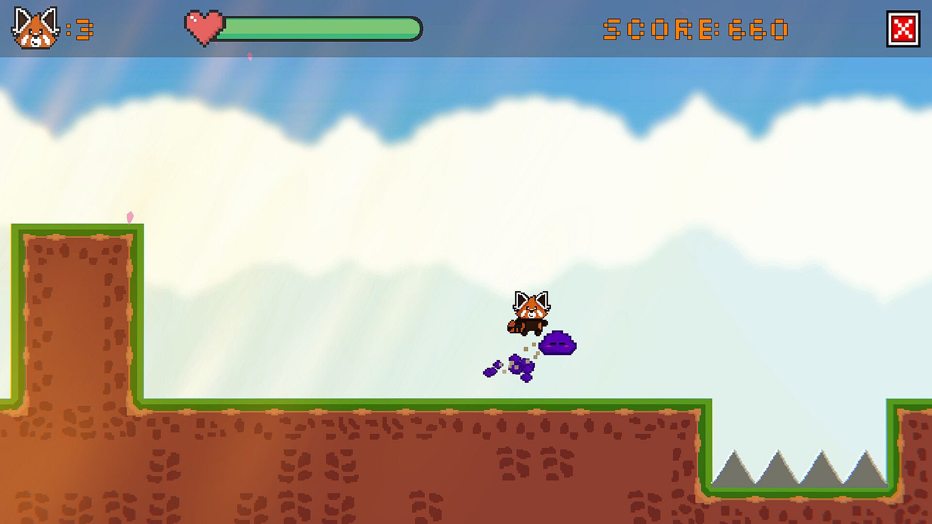 Explore a world filled with cute pixel animals. Jirai the Red Panda is a game about friendship, exploration, and slime? In this pixel platformer game you'll have to run, jump and dash your way through challenging platforming levels and boss battles.