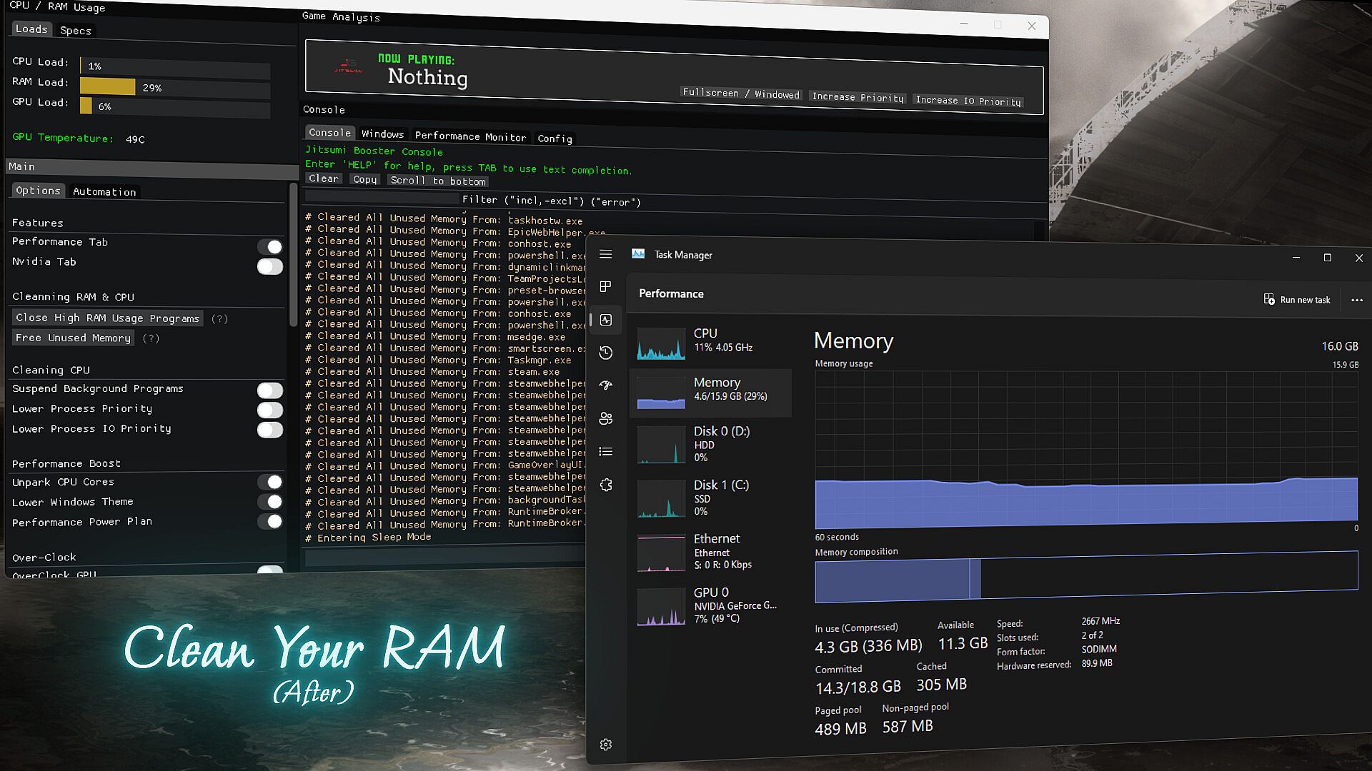 - Unused Memory Cleaner- Background Processes Manager