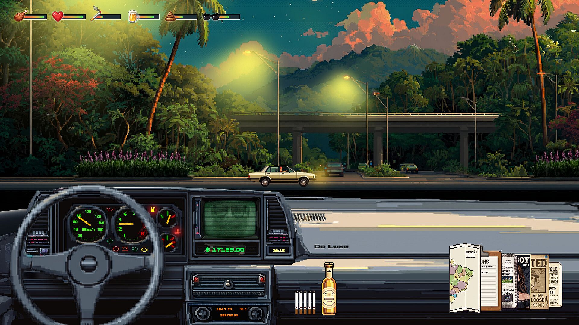 Between potholes in the streets, muggers wanting a beer, radical militants, corrupt police officers, lost tourists, and mechanical problems, every corner is a new challenge. Find the promised steak and the cheap beer. Every real spent could be the difference between the promised night and completing the mission, or it could result in a disaster for Brazilian democracy.