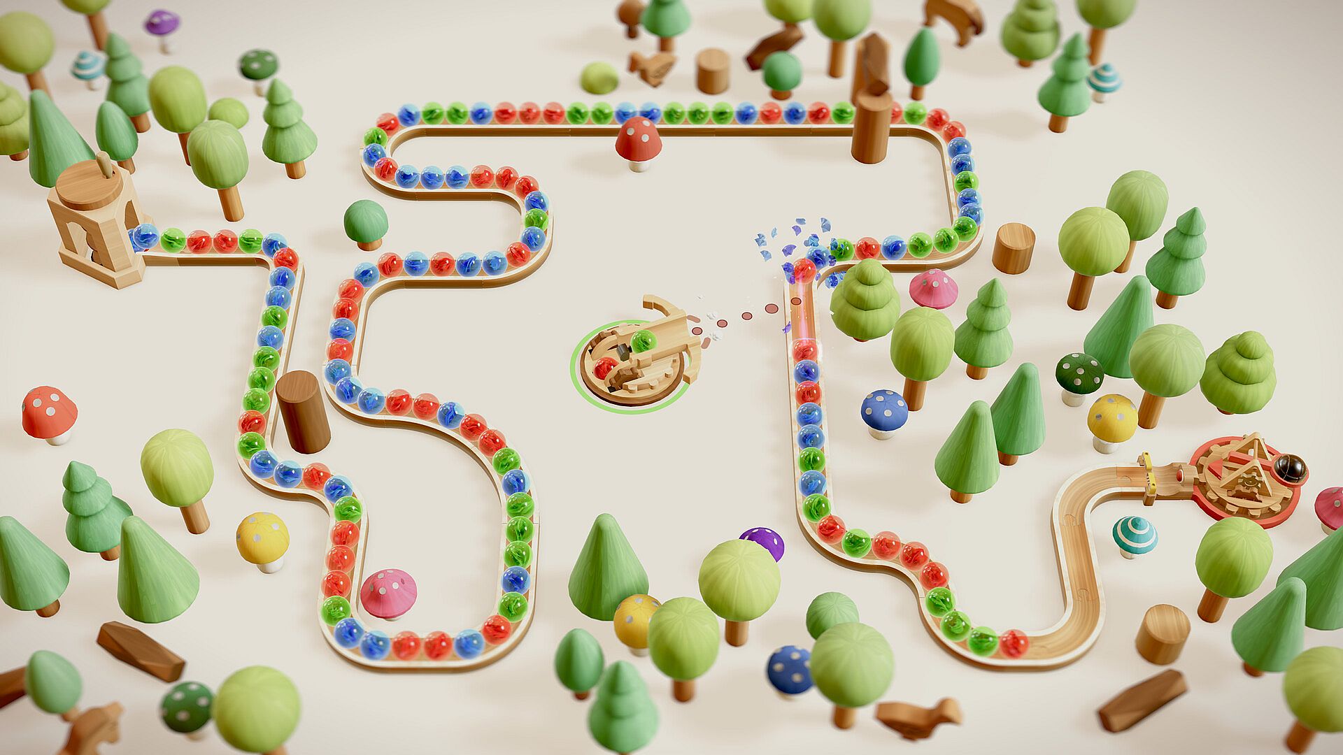 When you’re not bursting marbles, you can explore different toy-like zones, each with its own unique theme. Hidden throughout these areas are collectibles waiting to be found, and collecting them will unlock new parts of the game. Keep your eyes out!