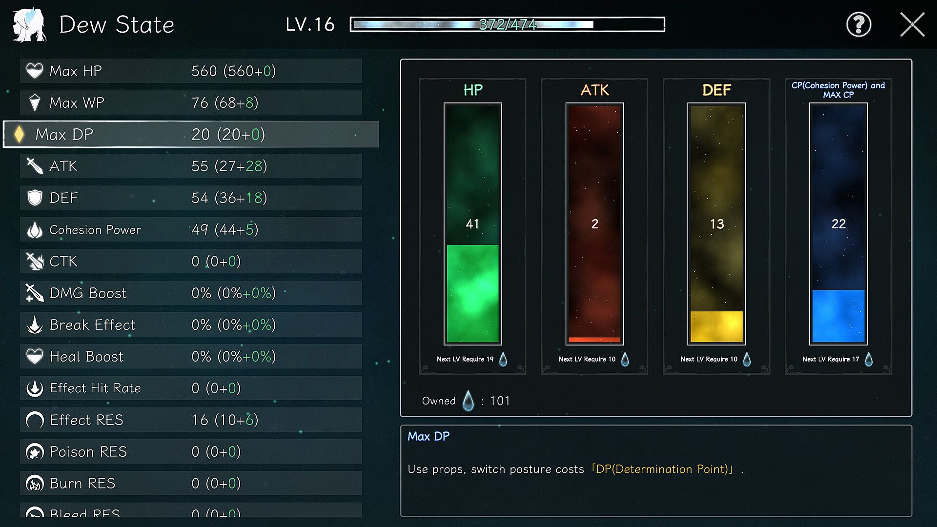 Use a posture to change the attributes and combat style of Dew, and establish your combat style;