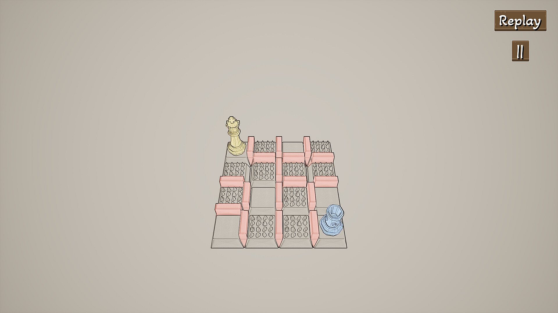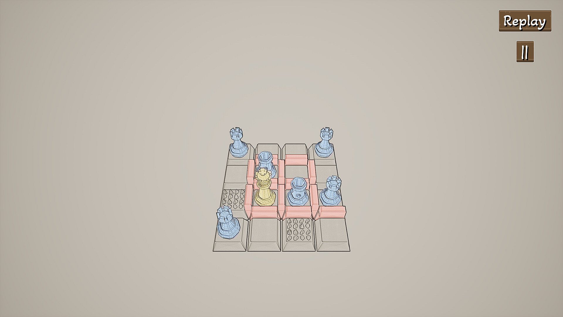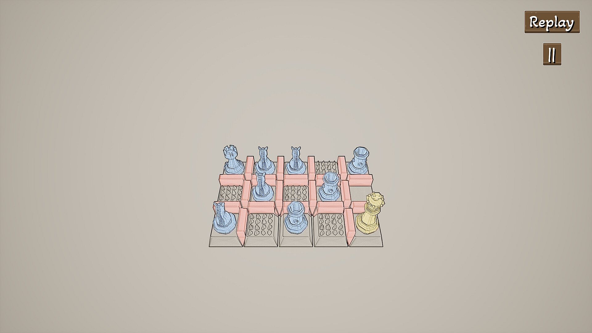 "JU, QI, PAO" is a chess-themed top-down perspective casual puzzle game. Players can control three types of chess pieces: the chariot, the horse, and the cannon. Each piece has a unique ability and can move on a grid-like chessboard. The number of moves and the usage of special abilities are limited in each level. Players need to fully utilize the special abilities of each piece and figure out how to move the pieces to capture the "king" of each level and pass it.