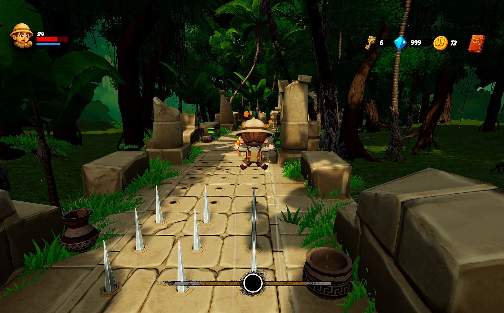 Escape from a massive rolling boulder and survive deadly jungle traps to carry the artifact to safety.