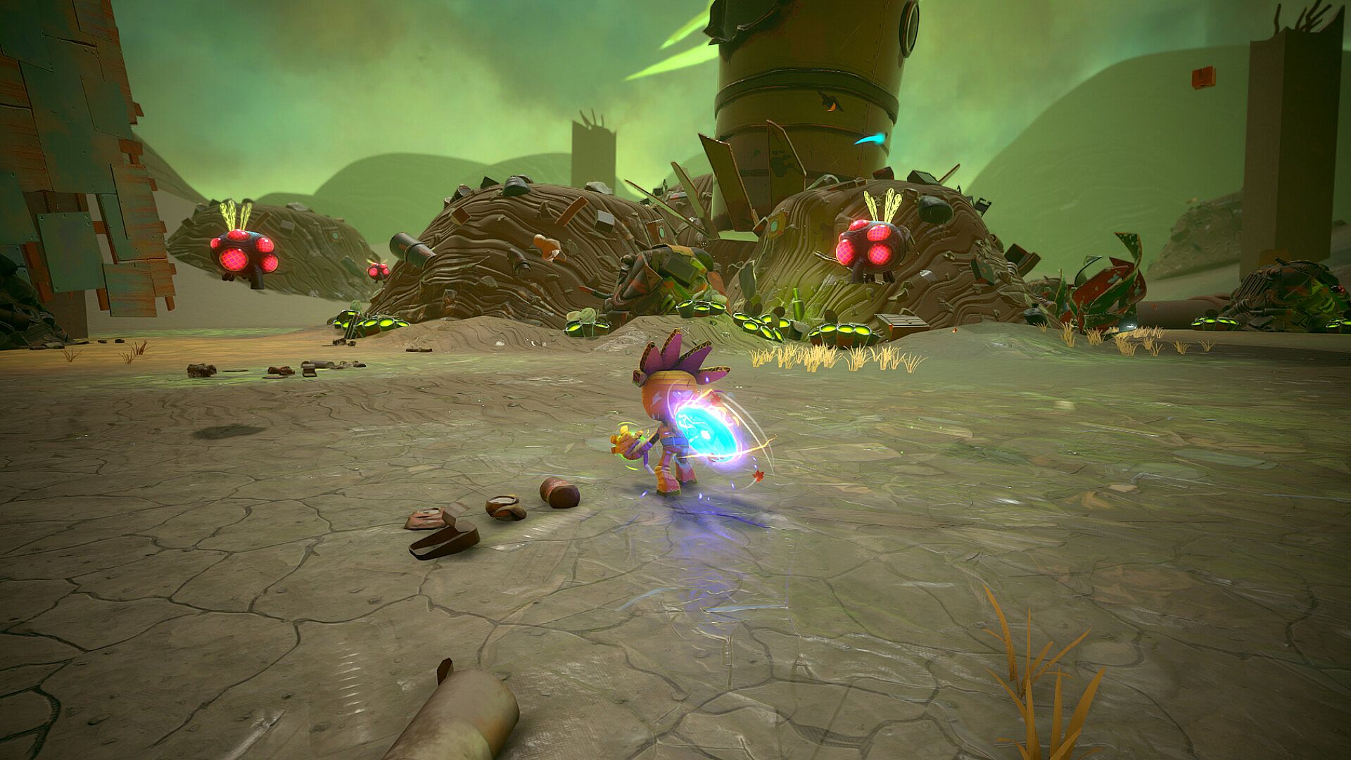 Master a combat system where the best offense is a good defense. Block, parry, and reflect enemy attacks to turn their powers against them. Throw your Trash-Lid Shield or slash through toxic creatures with precision.