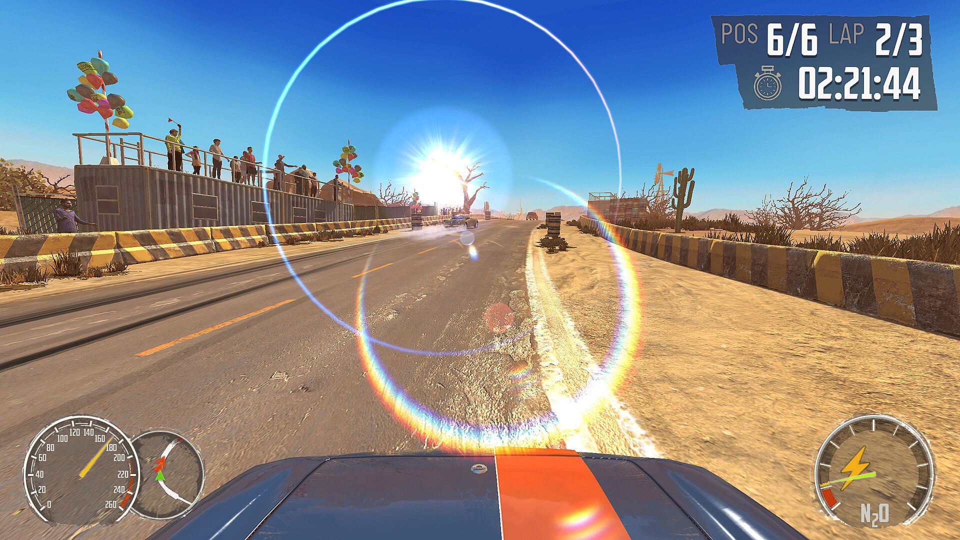 Players navigate through diverse environments, including dusty desert roads, ramshackle junkyards, and winding country lanes. Race opponents, complete time trials, participate in tournaments in single player - or challenge a friend for a cutthroat couch multiplayer session!
