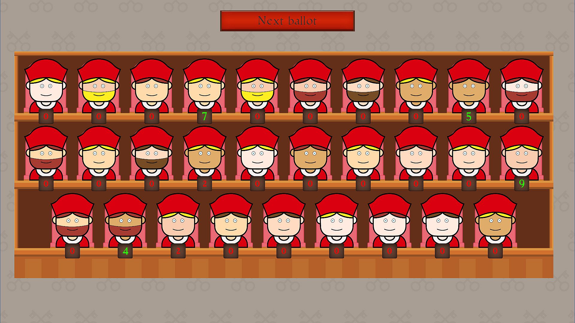 In this turn-based political simulator set in the Papal States, players navigate corruption, nepotism, and power struggles to climb Church hierarchies. Become Pope by appointing bishops, shaping the College of Cardinals, and managing key institutions, all while bribing, blackmailing, or eliminating rivals. Start investigations through the Holy Office to target heretics, corruption, or family enemies, and create bureaucratic offices for relatives with hefty salaries.