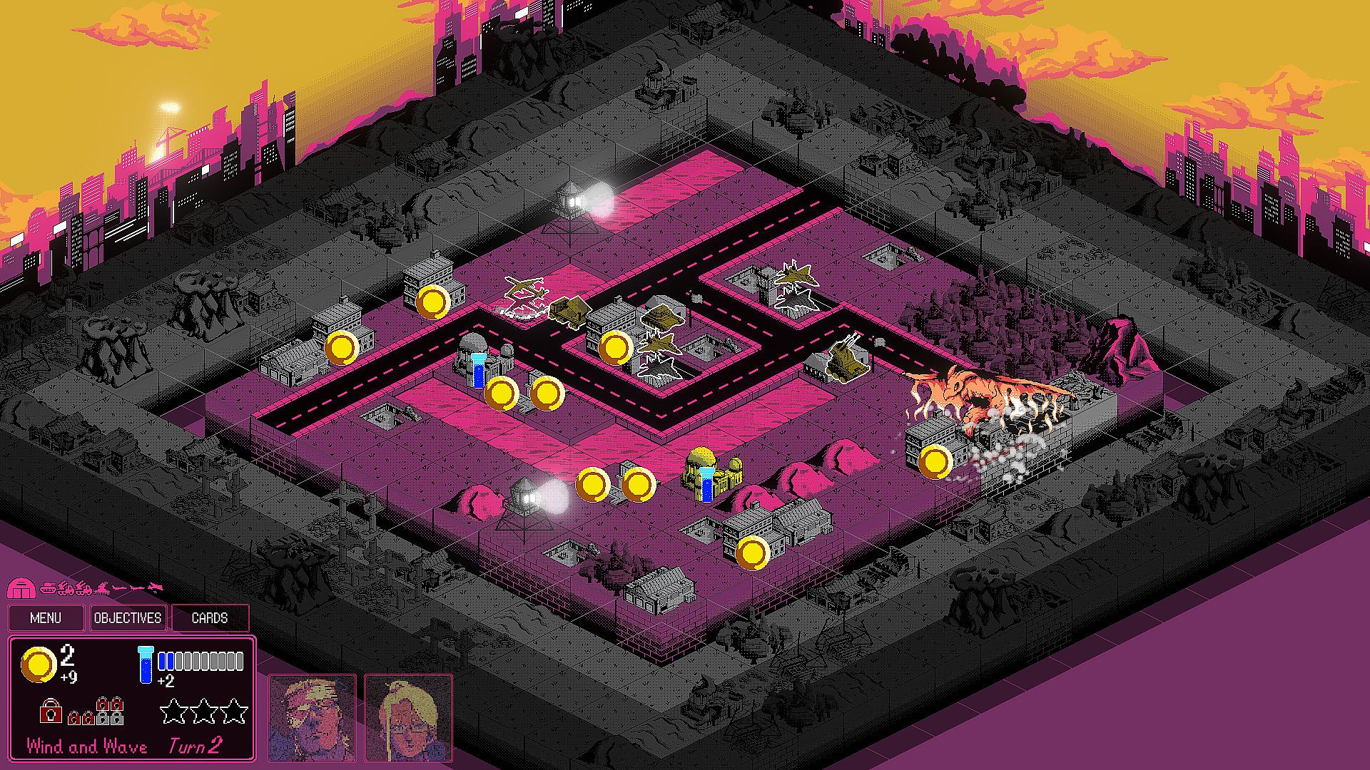 Kaiju are approaching the city! Scramble the jets and deploy the tanks in this 2D turn-based strategy game.