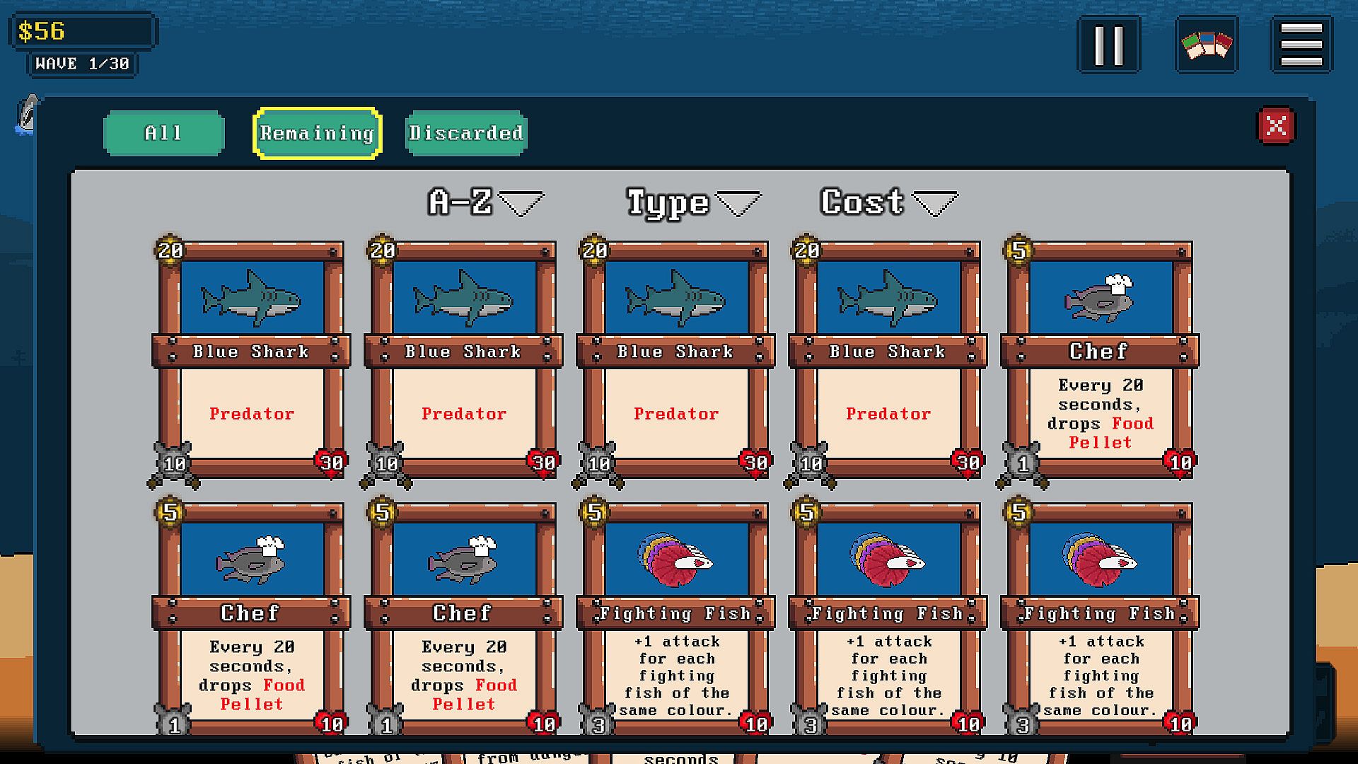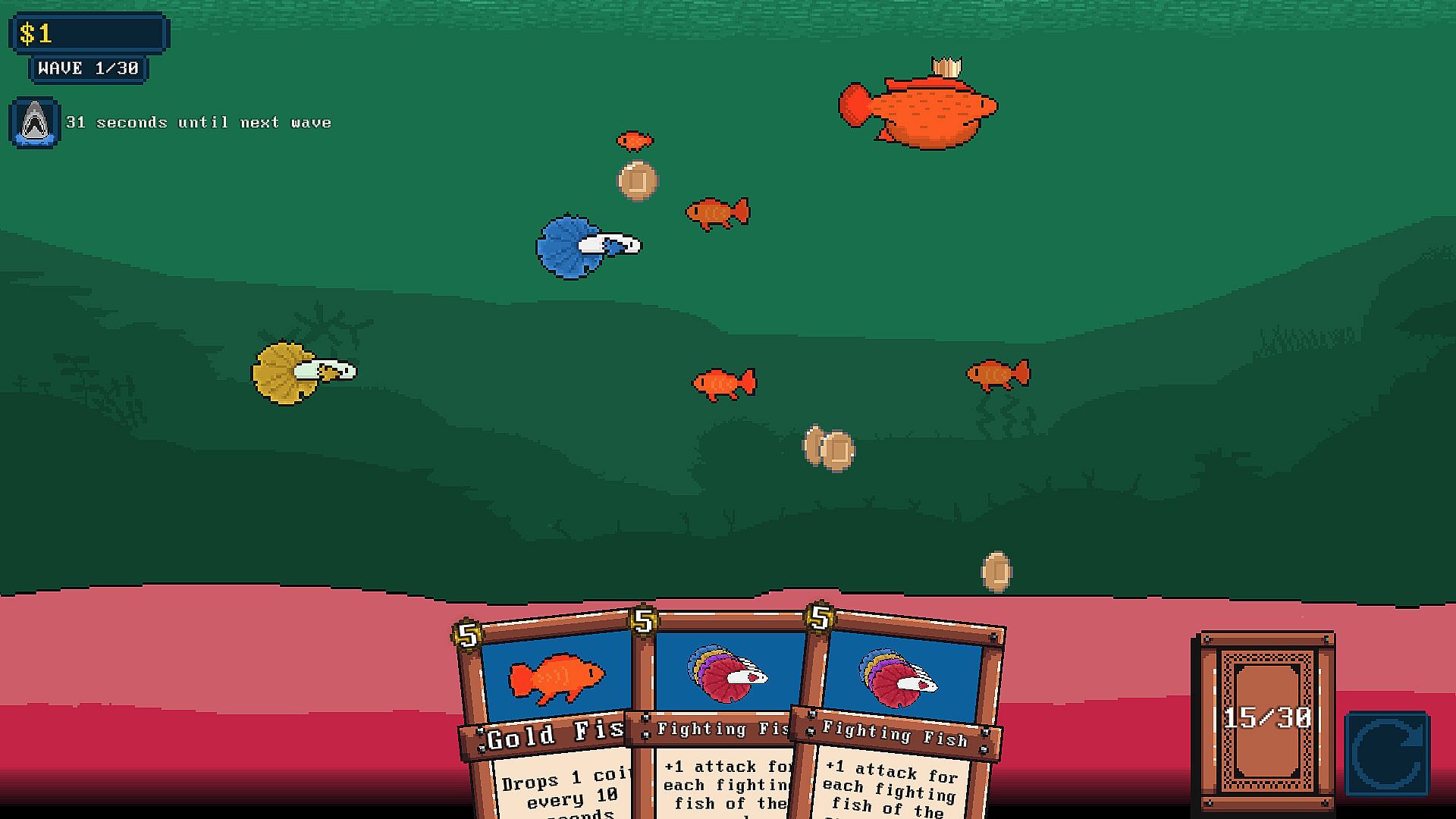 Kalasta plays like a combination of Insaniquarium and a roguelite deckbuilding game. The waves of enemies will provide a challenge if you don't nurture your aquarium of fish but each run provides a unique experience. Unlock new cards and items to give your fish a fighting chance.