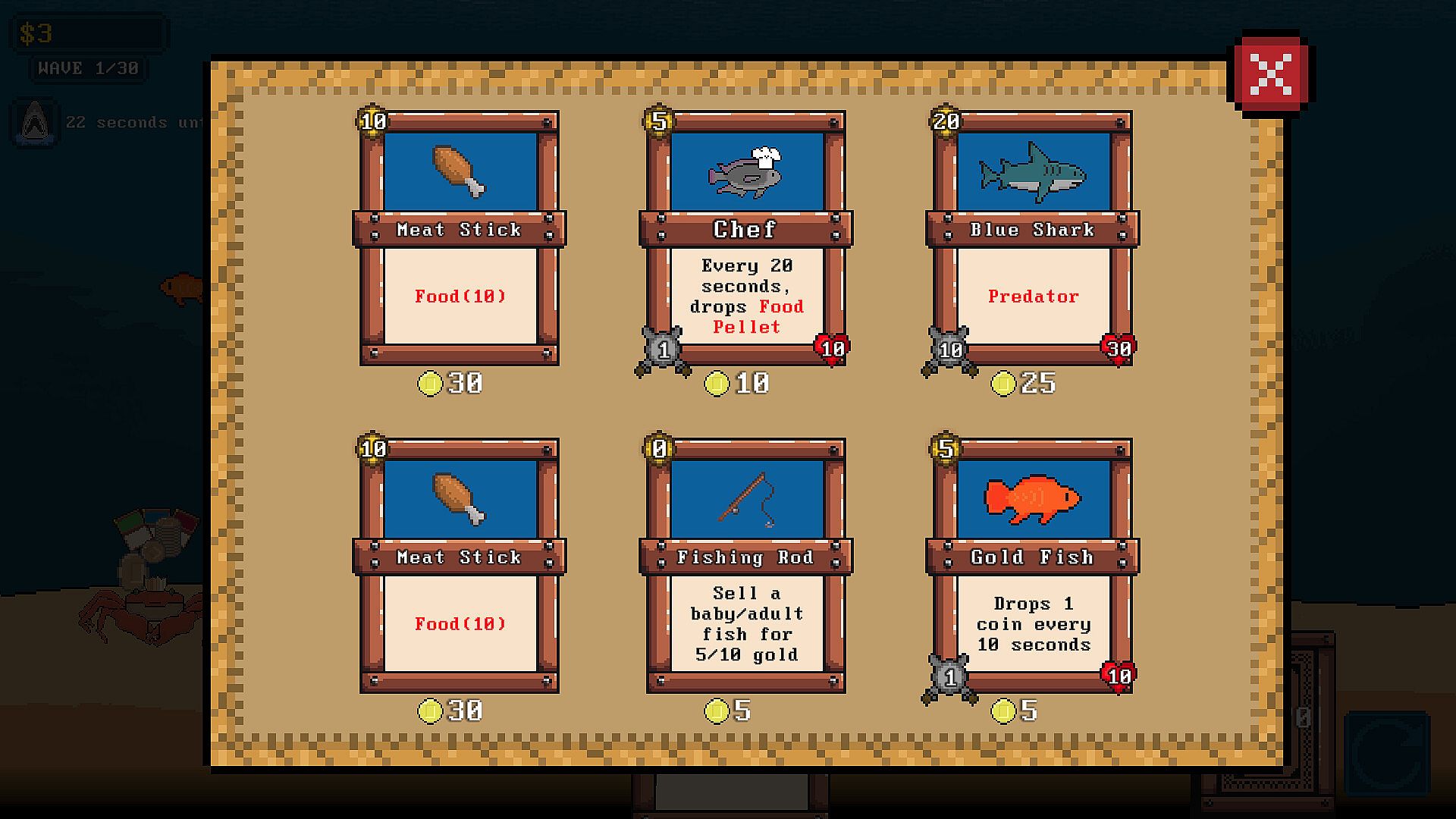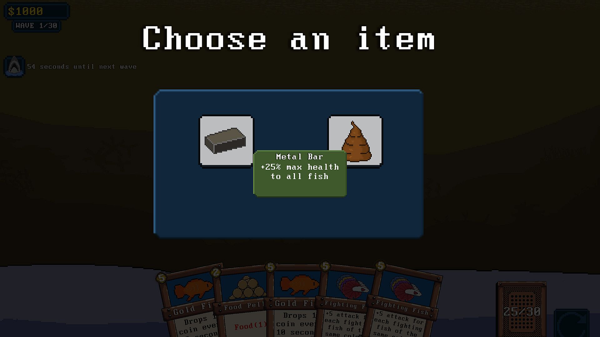 Kalasta is a roguelite deckbuilder fish game with real time strategy mechanics. Use your cards to spawn, feed and empower your fish throughout waves of invading enemies. Collect coins to use on upgrading your deck and purchasing items with unique abilities.