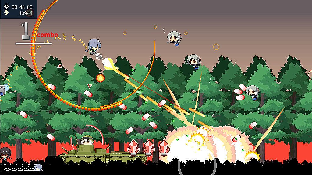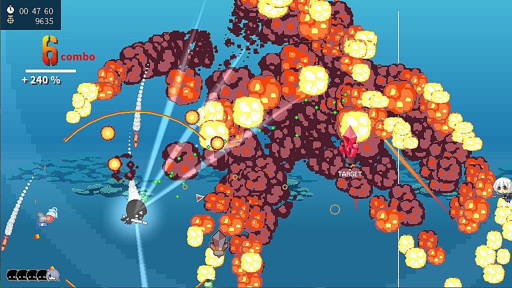 • A brand new kind of shump where you use weapons and kamikaze attacks to quickly clear stages taking down as many enemies with you as possible.
