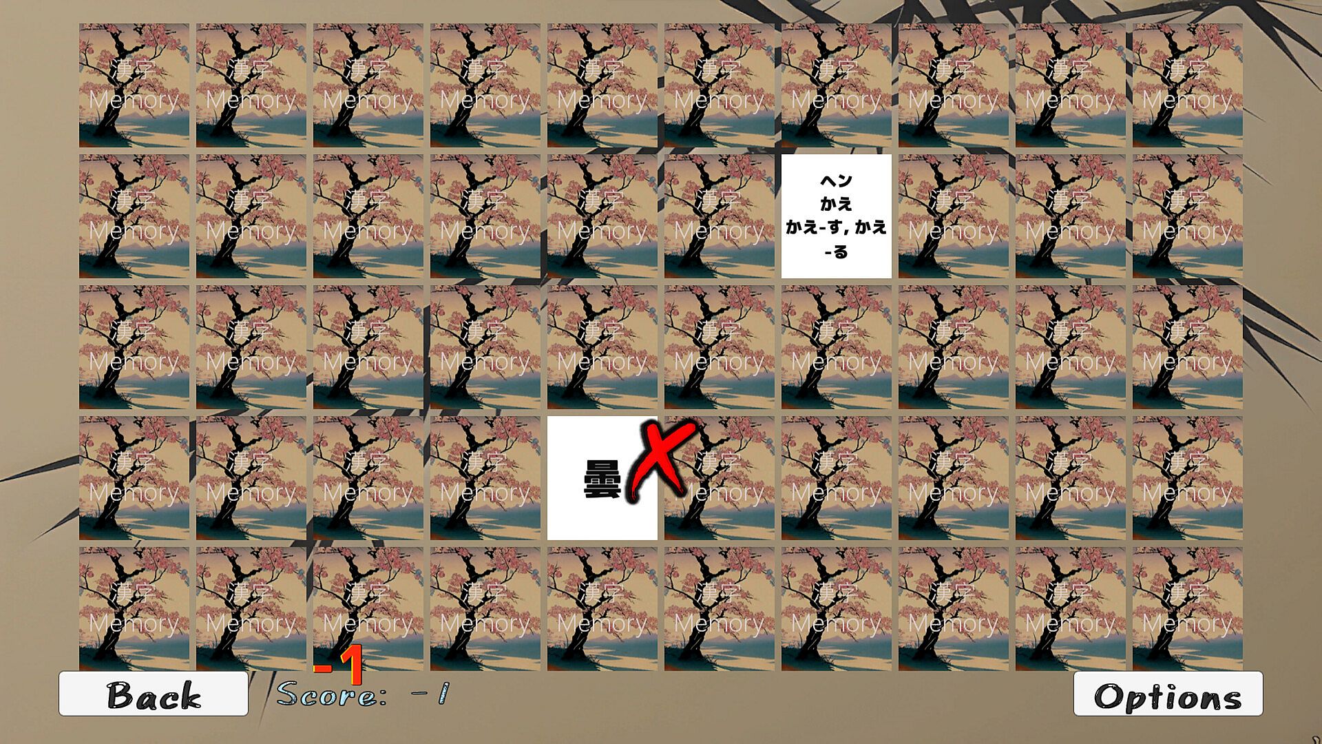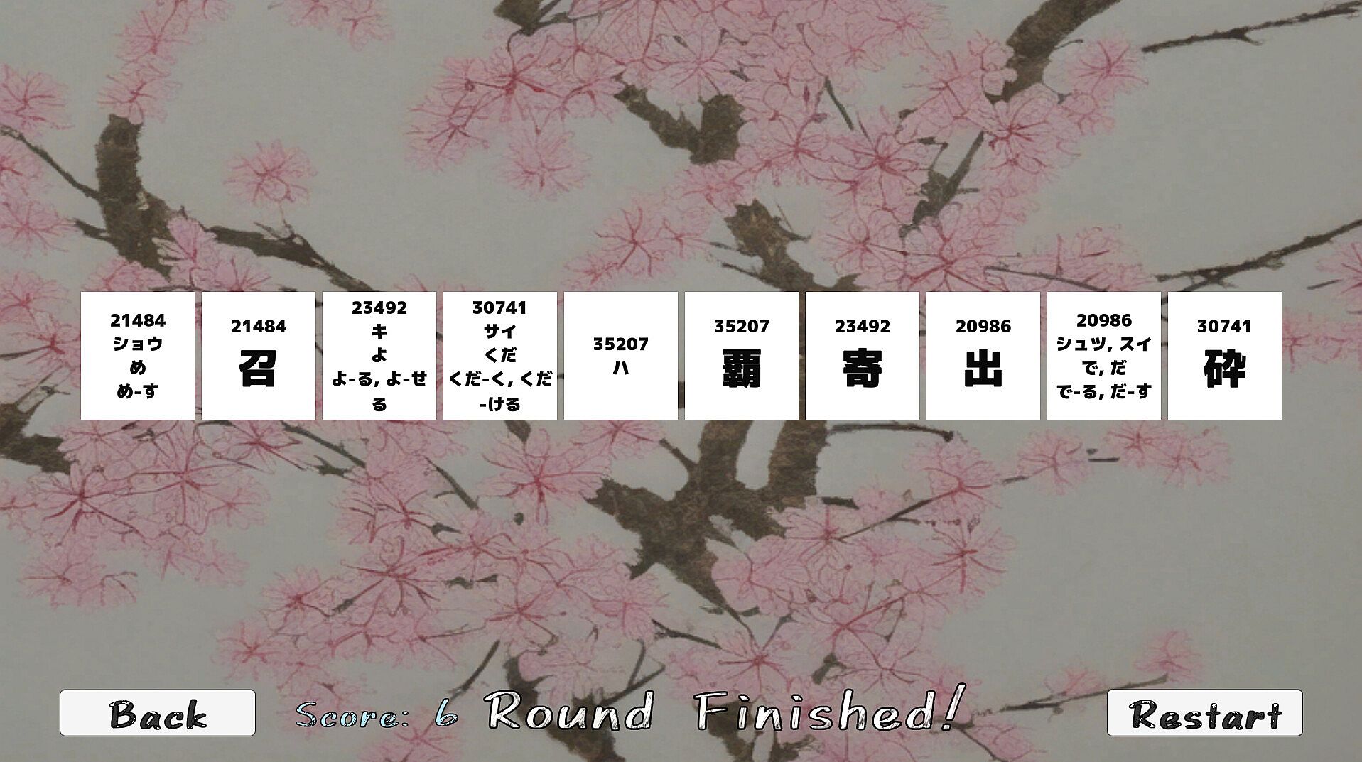 Each round will set up a fresh play deck by choosing randomly selected kanji out of all available jouyou kanji.
