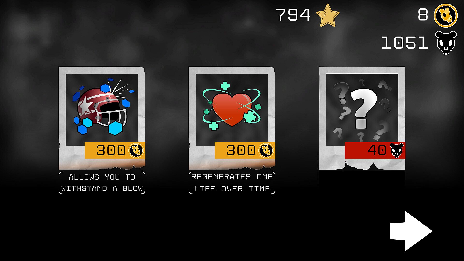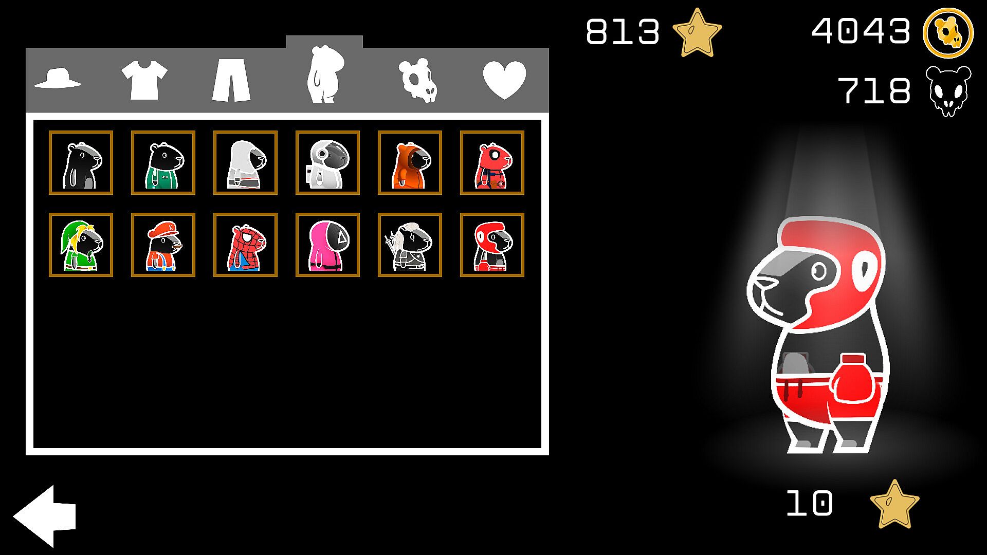 But it's not all gloom! With every victory, the Capybara's world will come alive and fill with color. Modifiers not only make the game more challenging but also paint the levels according to the chosen trial. And to face death in style, you can choose unique skins for your Capybara.