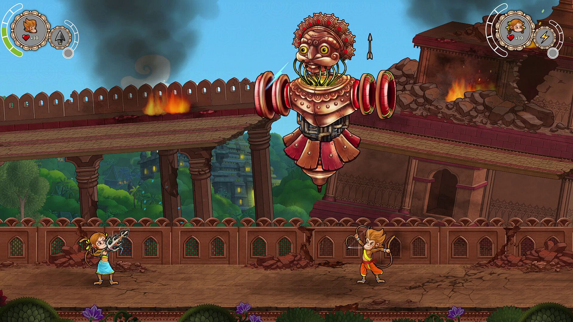 Vaanar is the protagonist around whom the main campaign revolves, but if a co-op player joins, he is accompanied by his charming female-vaanar friend named “Bindu”. She is an equally great fighter as him: whether you play as Vaanar or Bindu, your mechanics and playstyle remains the same.