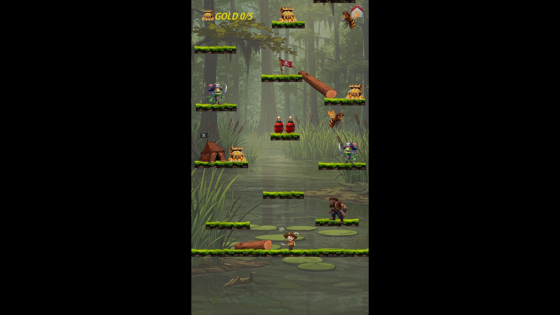 Embark on a breathtaking adventure in the land of pirates! Fight fiercely with enemy pirates, overcome obstacles, grab chests full of gold and advance to the next challenging level! With its colorful visuals, engaging gameplay and islands full of secrets, each level in this 2D platform game is a new discovery! Grab your treasure, grab your dagger and become a legend!