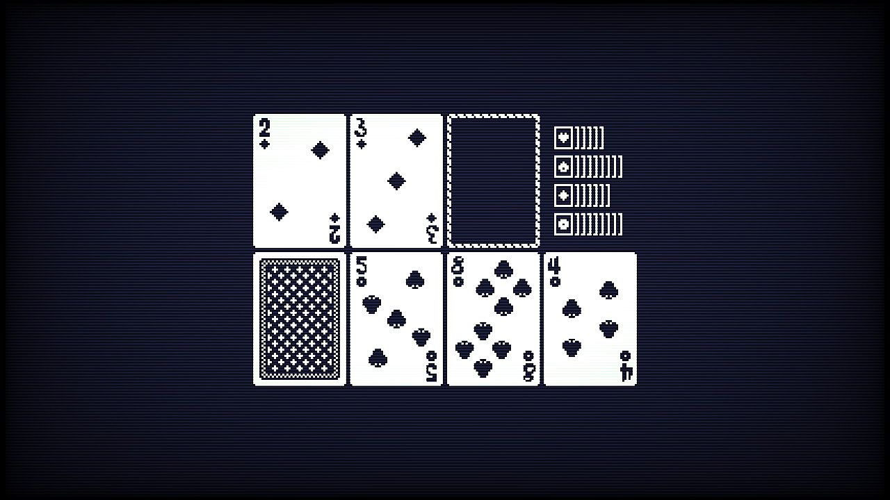 Karanos Solitaire delivers a single-player card game with an original ruleset, centered on grouping cards from a traditional deck into high-scoring combos. Players remove all cards to rack up points through pairs, chains, flushes, royals, and triples, while managing a top row and bottom row setup. Quick 5-minute rounds feature a minimal interface, relaxing gameplay, multiple cardback options, and color themes. Setup strips face cards from 40 aces and numerals, revealing three to start. Actions let you shift cards between rows, recycle to the deck, form combos for removal, or discard singles at a point cost. Score 40 or more to win, with an extra 11 points if every card fuels a combo-ideal for indie card game fans seeking bite-sized, strategic sessions on PC.