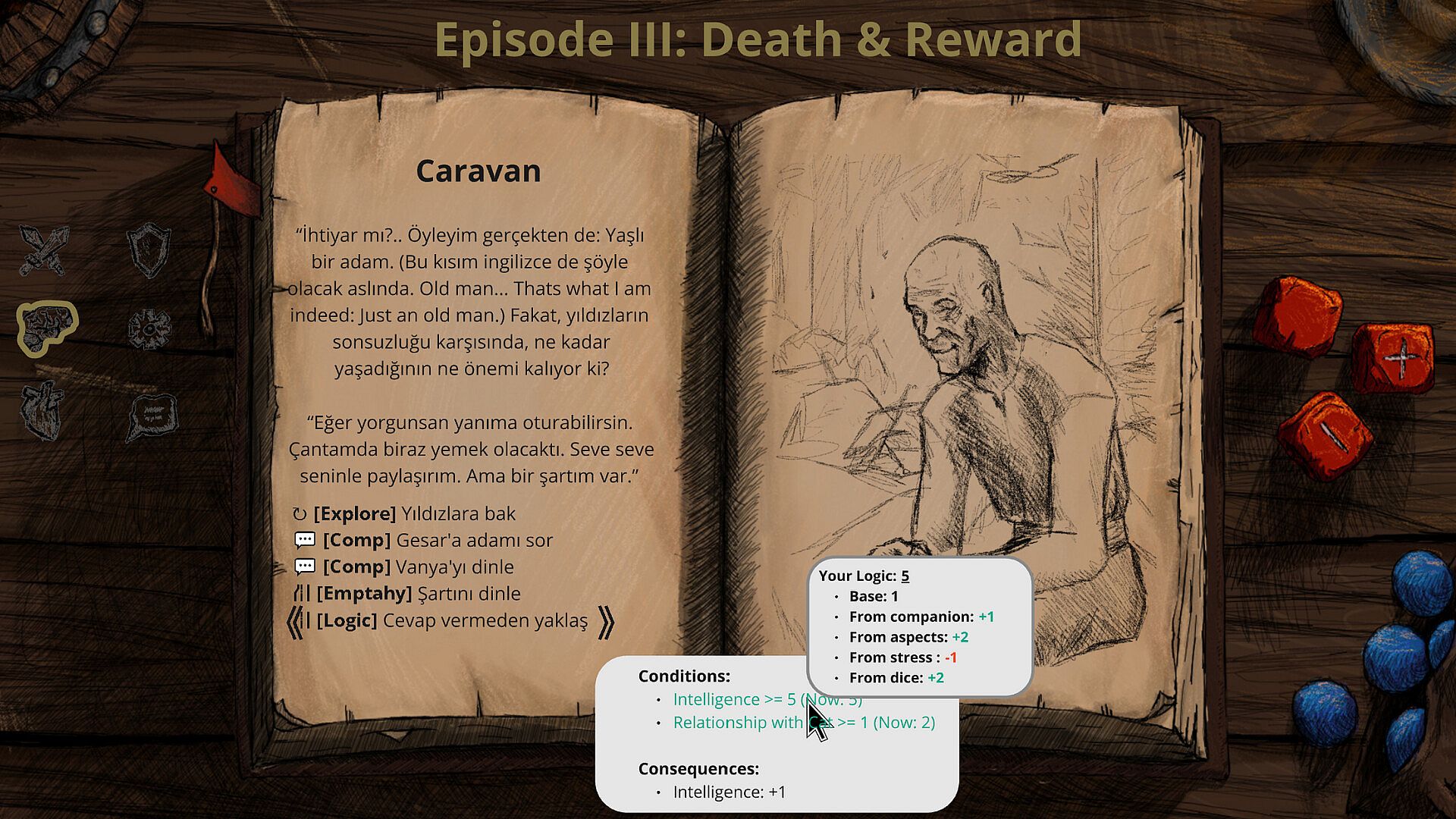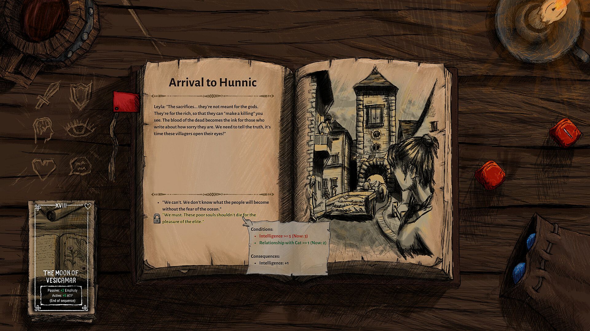 "Kardiya: The Winds of Fate" is a narrative-driven RPG set in a world inspired by the cells of the human body. The role-playing mechanics in our game are inspired by the FATE RPG system. Experience Elbek's journey from birth to death, where every choice you make shapes the story. It's up to you to play the almighty fighter, the witty alchemist, or the charming chatterbox. Build your character, choose their life path, and determine their fate through dice and cards. And remember, no two playthroughs will be the same.