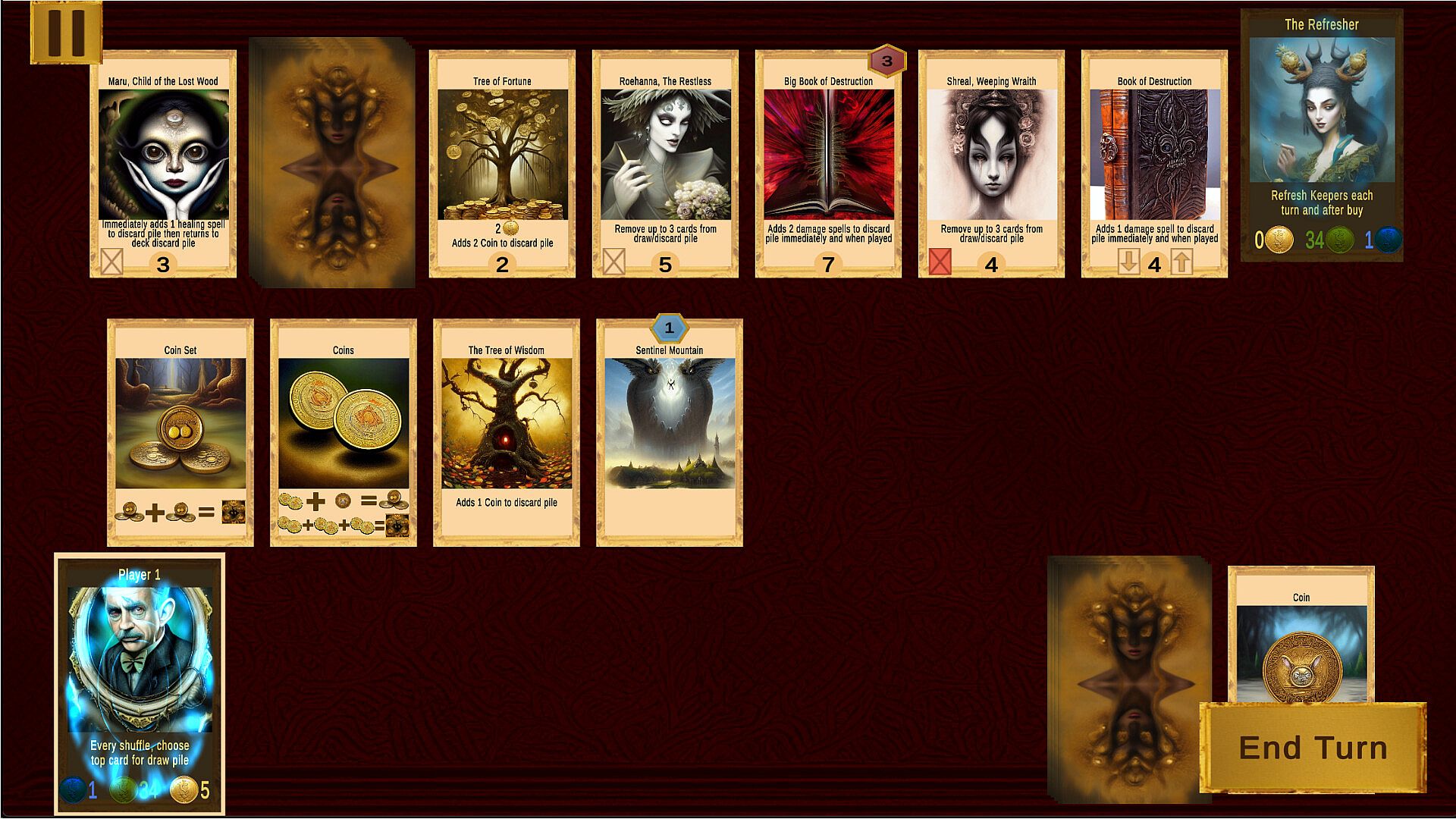 Keepers of the Forest is an epic, 2 player deck building game. Can be played alone against the computer or two local players can battle it out. Choose your hero to begin. Each of the 4 choices offers a different special ability (listed on each card) such as never having to discard or piercing through your opponent's protection with every damage dealt.
