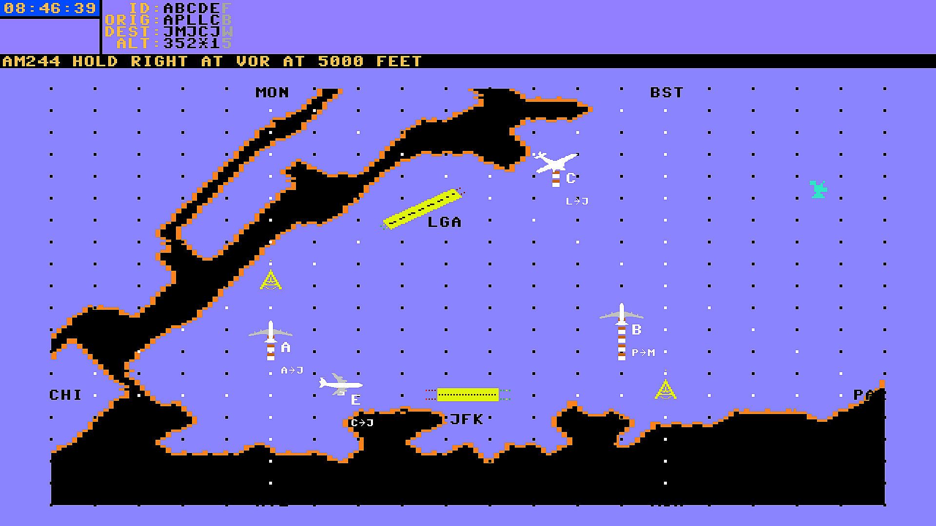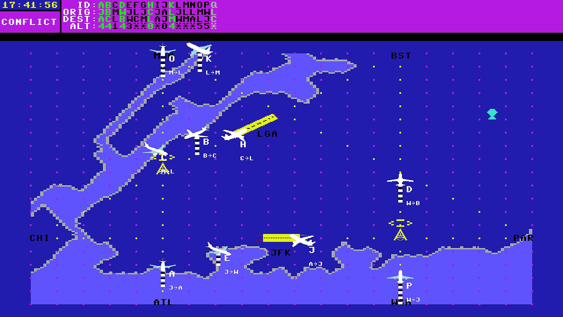 Air Traffic Control is one of the world's most demanding professions. Every minute in the tower a Controller is called on to make life or death decisions for thousands of passengers and crewmembers. He or she must control a constantly changing situation; monitoring flight departures and arrivals; guiding planes around bad weather, mountainous terrain, and restricted flight areas; coping with fuel emergencies, slow planes, and fast jets (including the supersonic Concorde). In this fast-moving environment, even the slightest miscalculation can lead to a dangerous near-miss or mid-air disaster! Air traffic control is not for everybody; to succeed you must have superb concentration, quick wits, and nerves of steel.KENNEDY APROACH gives you a chance to test your mettle. How well can you handle the pressure and responsibility? Learn the ropes by working the graveyard shift at Atlanta International, and then work your way up to prime time at John F. Kennedy International.