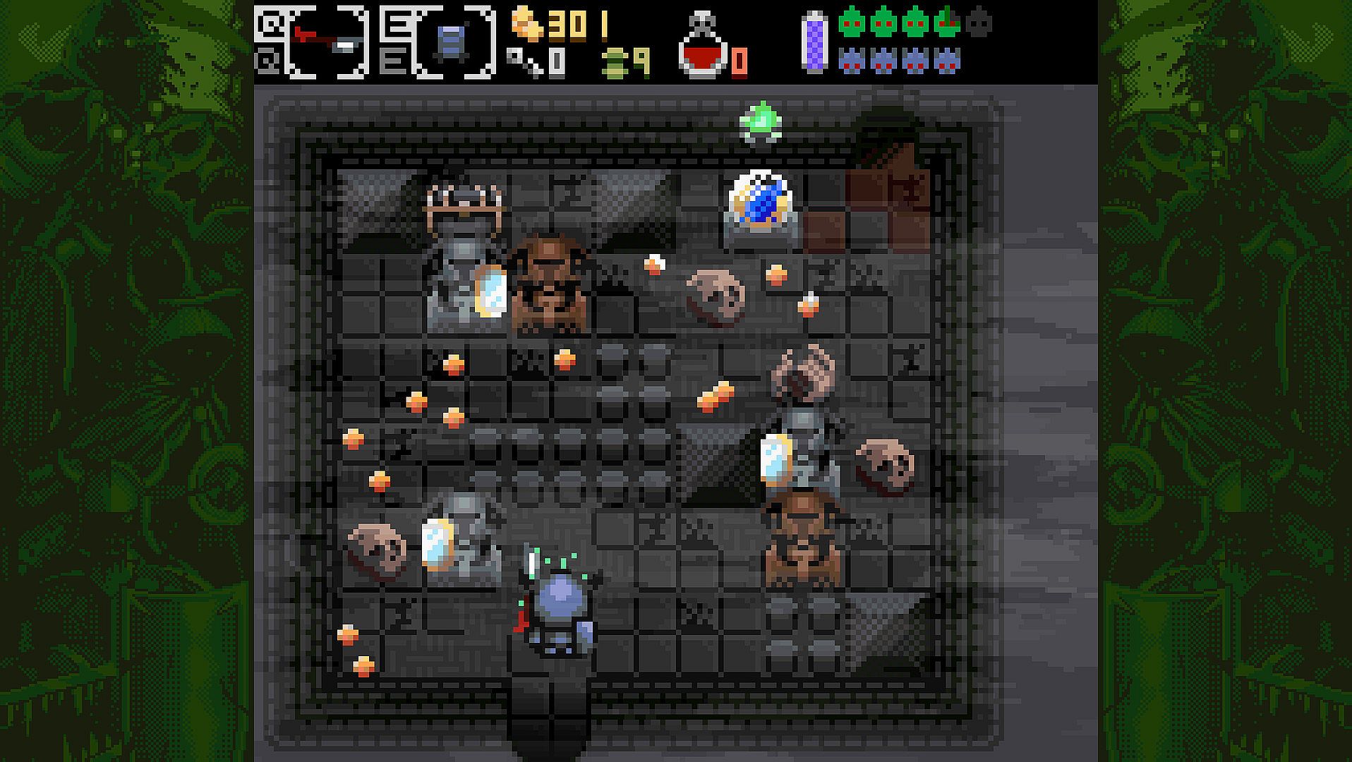 Kharon's Crypt is an eerie metroidvania dungeon crawler game full of puzzles, riddles and deadly challenges, and graphics designed to follow the aesthetics of the beloved Game Boy Color. In Kharon's Crypt, you'll be playing as Kharon (a being thought to be death itself) in his mission to escape from the crypt where he had been sealed by a deranged king that wanted to elude death.