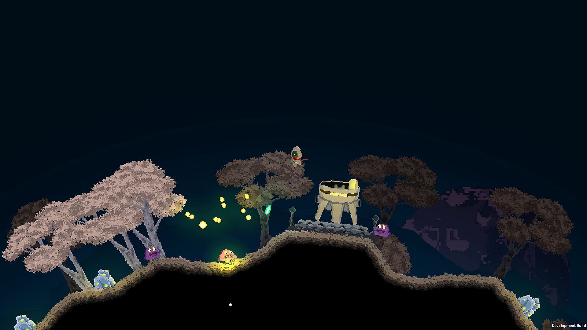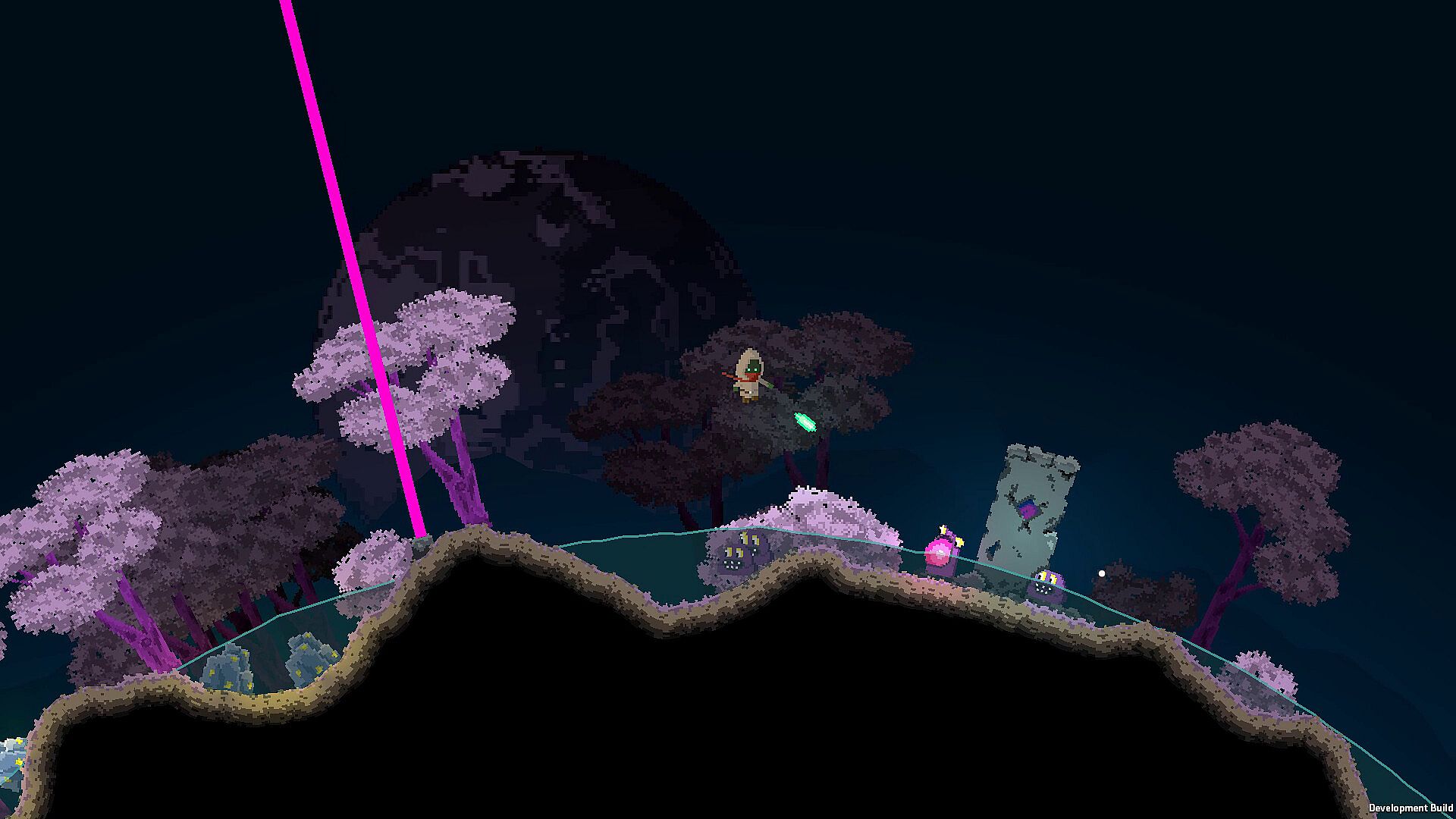 Enjoy procedurally generated planets with different terrains, water levels and vegetation. Once landed, feel free to explore and unveil the secrets of the new planet, but remember not to loose too much time as the wave is constantly chasing you!