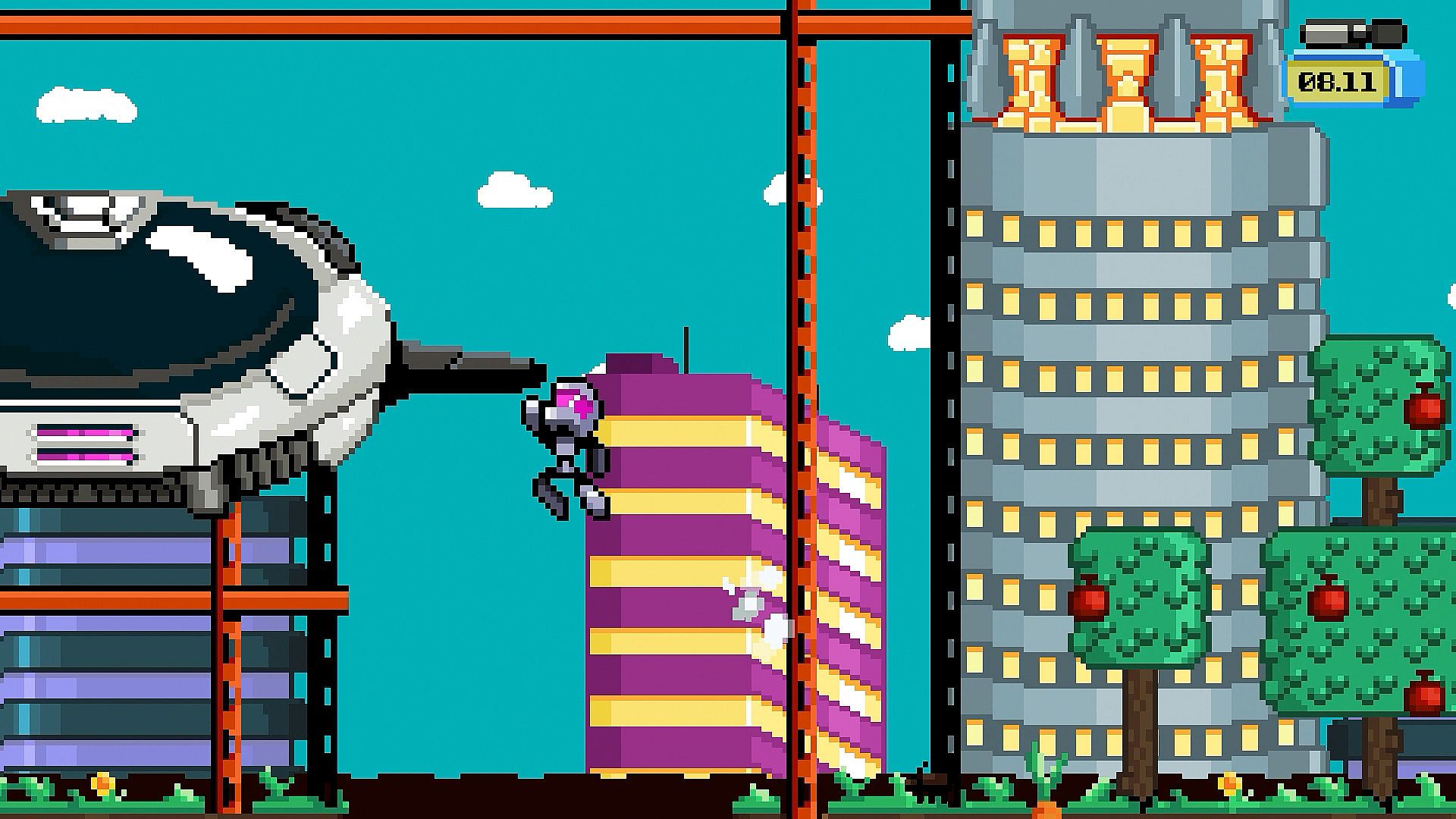 • Crisp pixel-art visuals inspired by the 16-bit handheld console generation.
