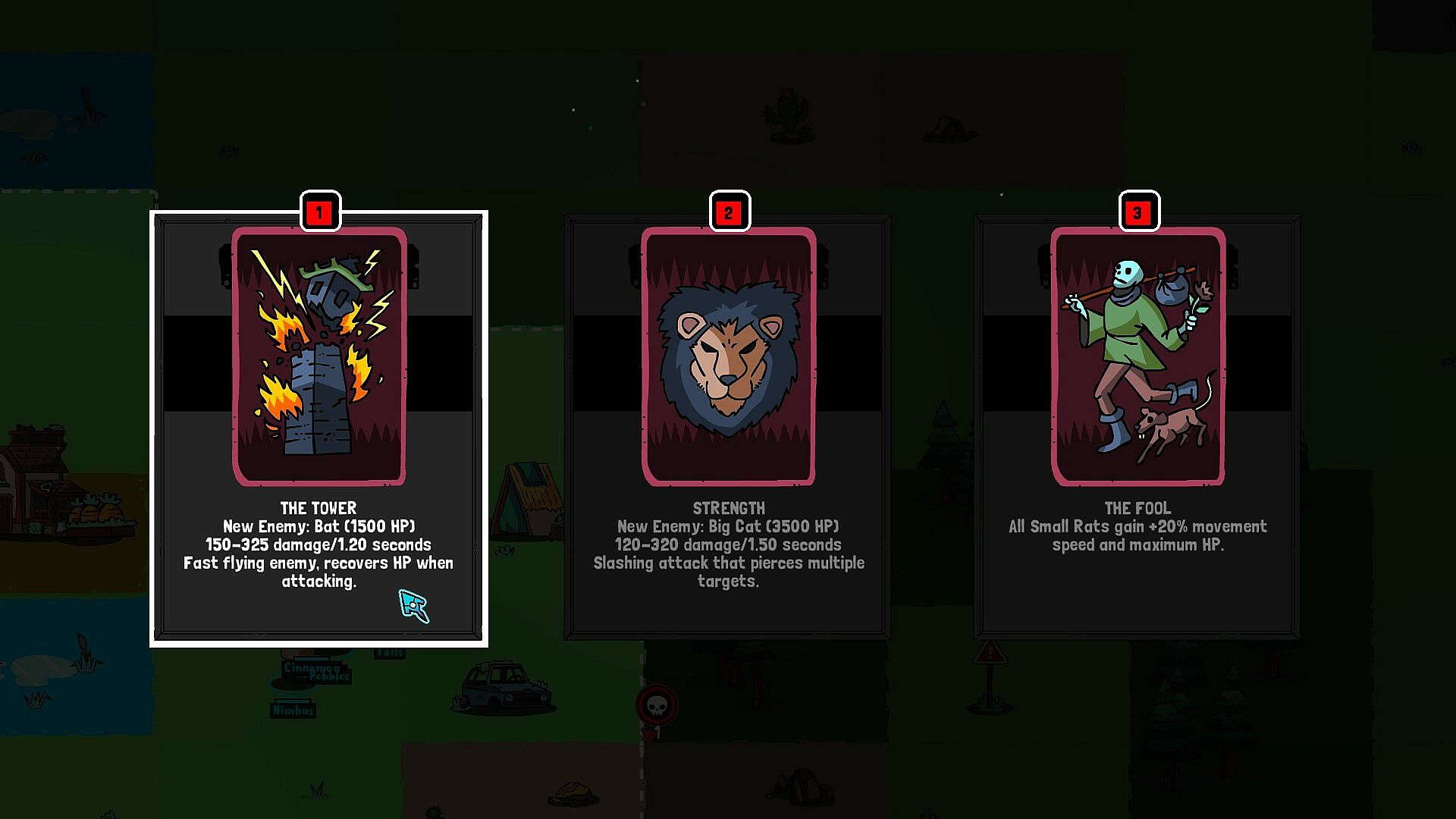 Explore a randomly generated world! Each time you start a new game, you will discover a unique combination of powers, resources, enemies, buildings and allies. Build up your village then protect the villagers from the forces of the mighty Rat King! The rogue-lite nature of the game ensures that your options and challenges are always interesting and constantly evolving.