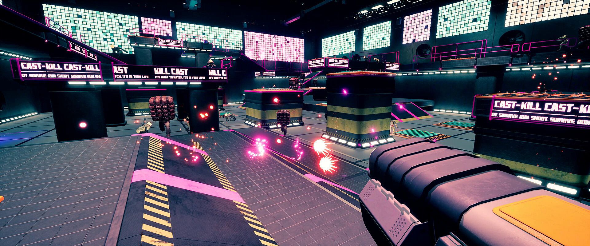 As the next contestant of The Kill Cast Show, the rules are simple: Kill mutants, survive the rounds and cash out before you’re cashed out. Each time you make it back to the studio you are given the chance to cash out and upload your high score or risk it all on another run! But be careful!! If you die, you lose it all!!
