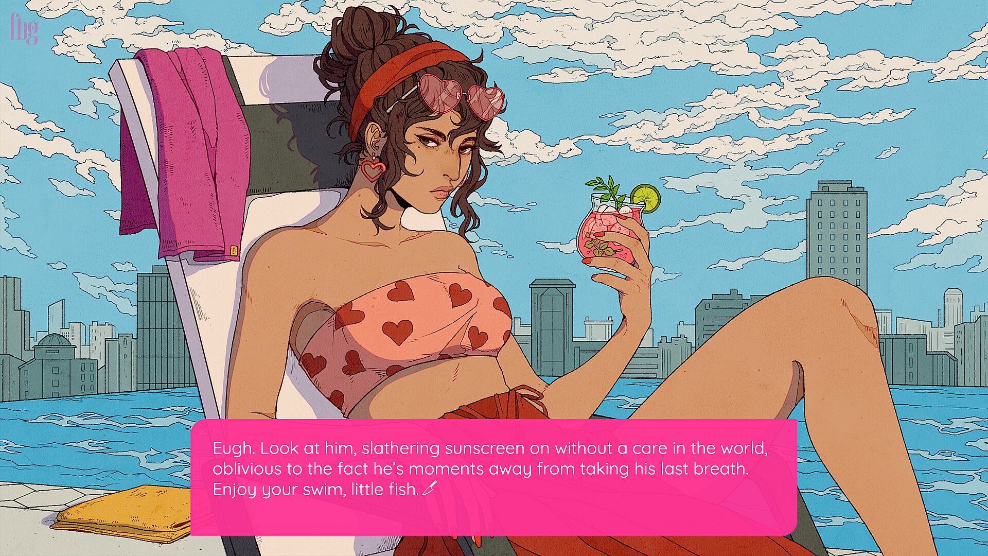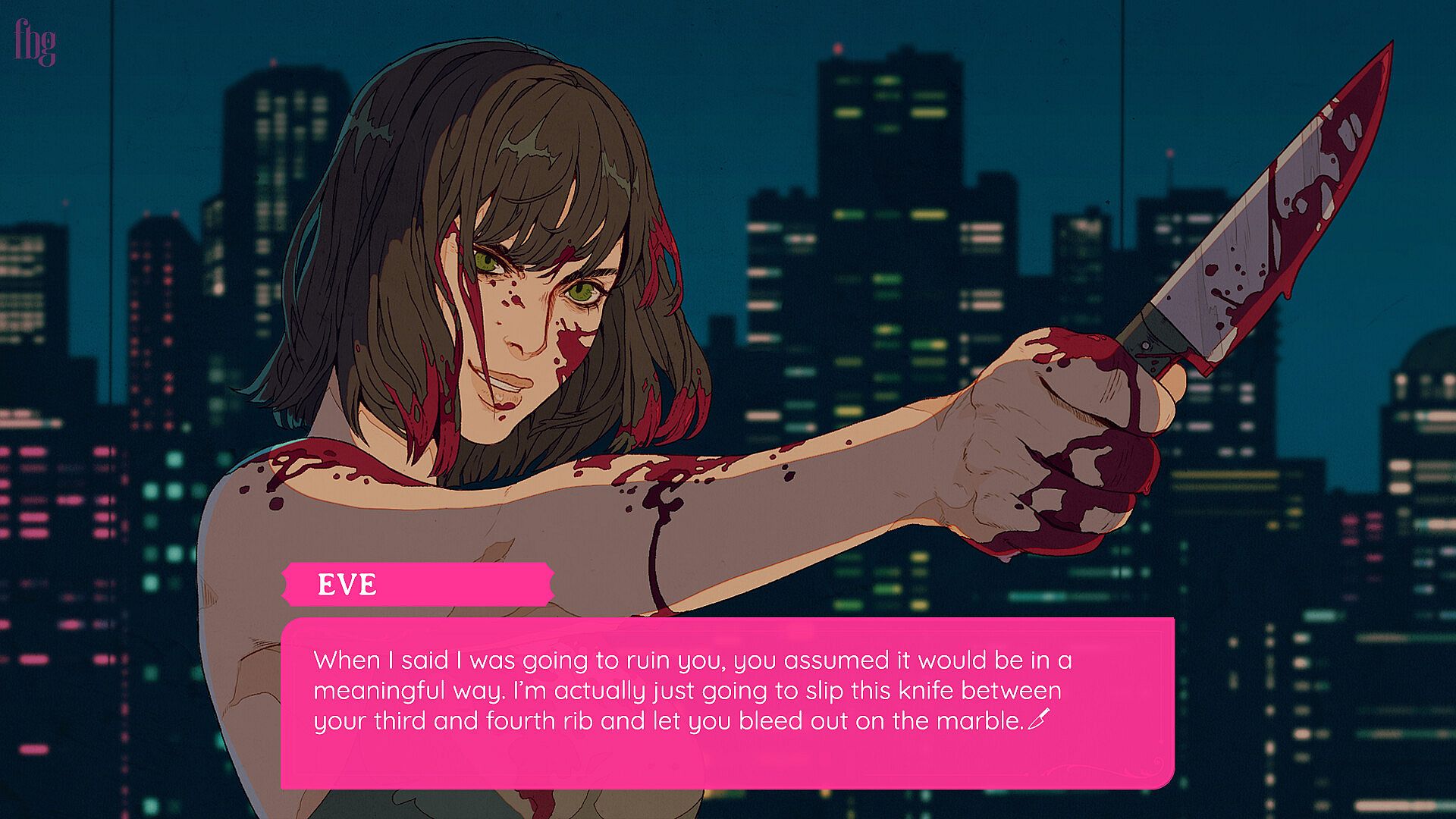 KILLING BOYS is an LGBTQ+ dark comedy, supernatural visual novel in which you play as EVE, an immortal assassin cursed with the kiss of death, as she turns on her (literal) evil corporate overlords in an attempt to break free of her iron-clad contract.