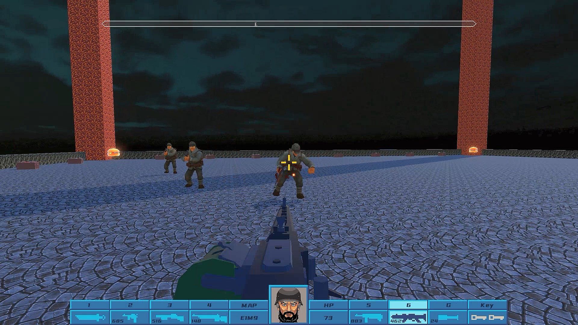 Hey! I am a big fan of "Wolfenstein 3D" and John Romero. I made this game to show my respect to them. I have collected and studied a lot of videos and articles of John Romero, learned a lot about game design concepts, and applied them to my game. For example, horseshoe-shaped game level design.