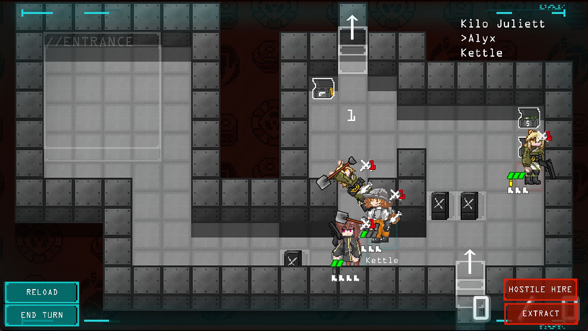 Hire, fire, and promote mercenaries ranging from basic GunBunny units to cyber-soldiers, combat streamers, and technological knights.