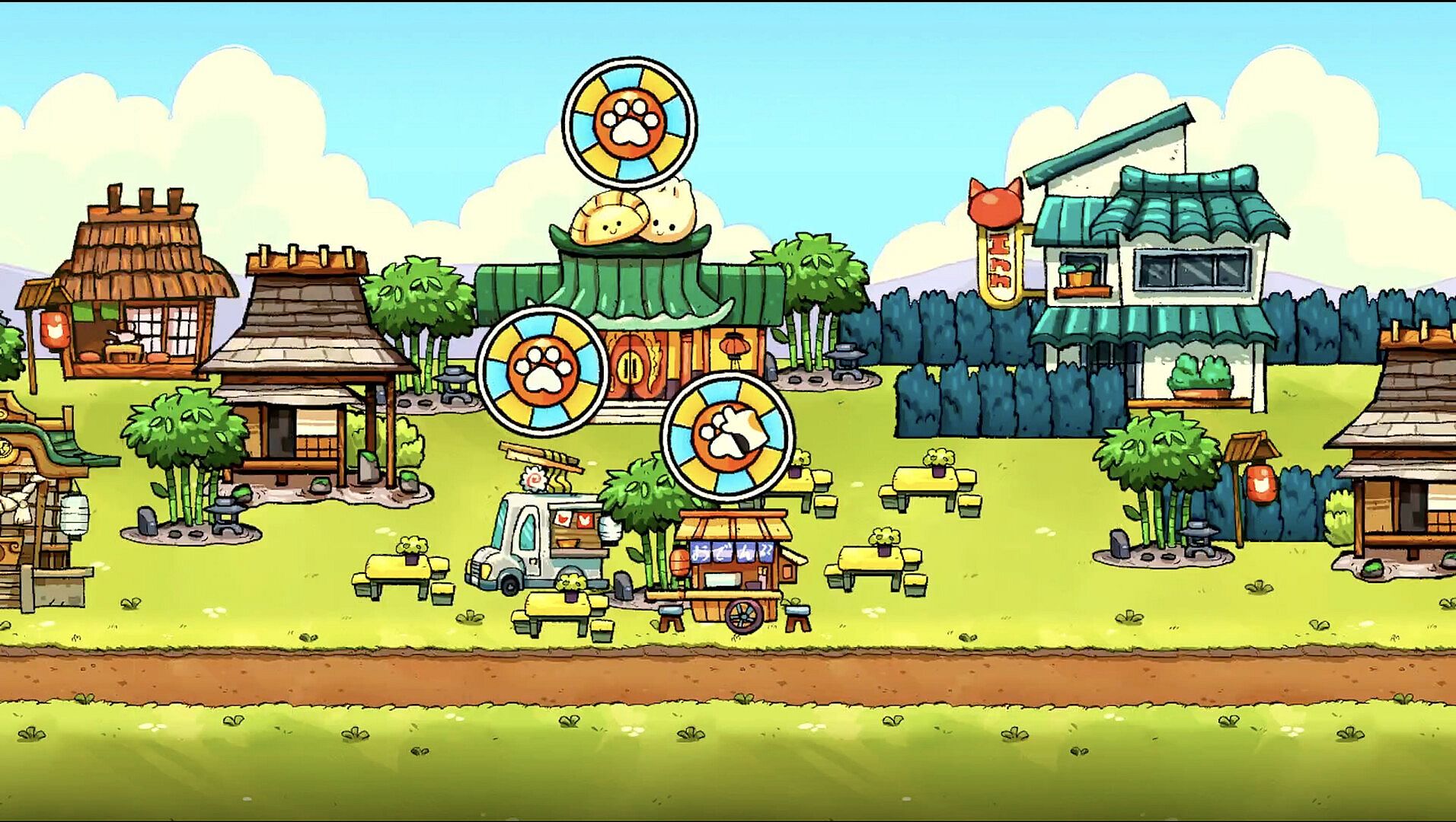 Throw darts at floating bubbles and watch the festival road transform before your eyes. Different bubble types reveal coins, helpful items, or whimsical twists like sudden weather changes and cameo characters.