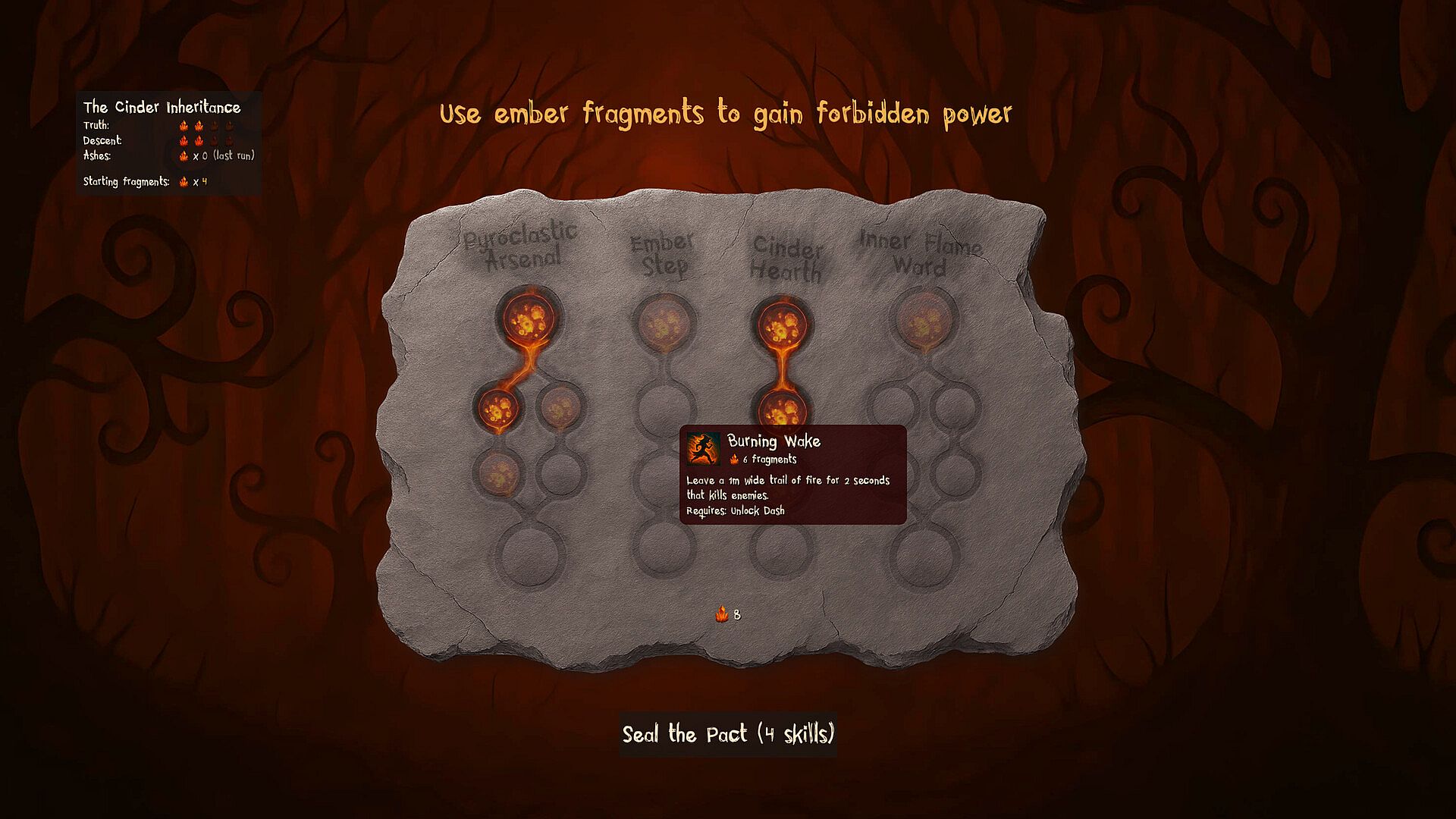 Kindling is a top-down action roguelite where you must break magical seals to escape a haunted forest. Navigate through darkness, wield fire magic against shadows, and uncover the truth across multiple attempts. Every death makes you stronger.
