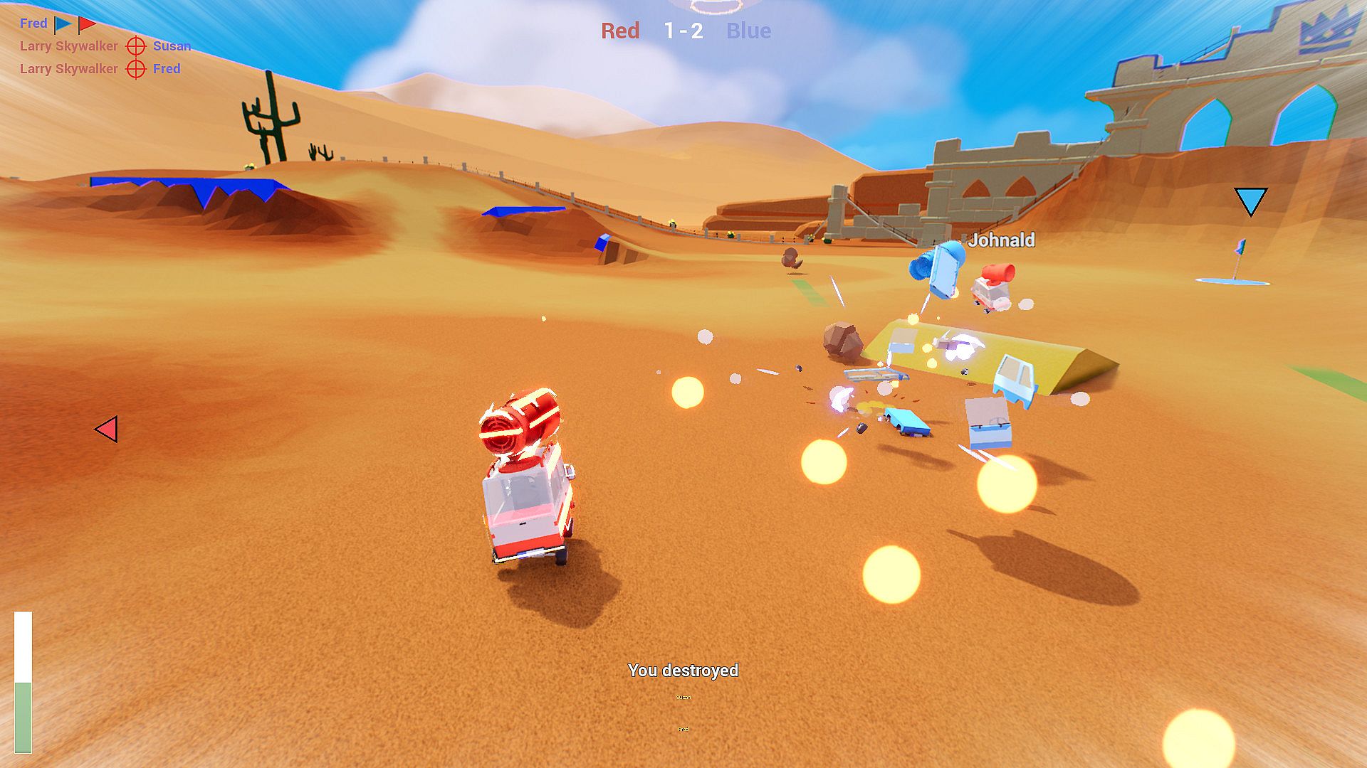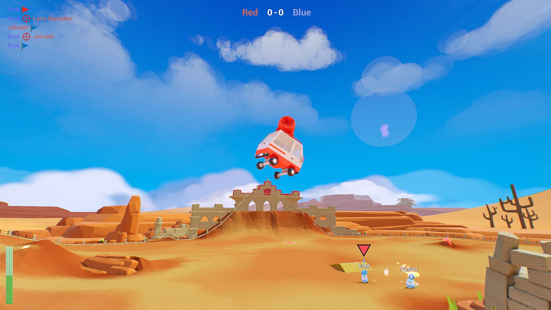 You're a fast-moving minivan with a projectile weapon in this Online Multiplayer PvP Battle Arena. Shoot rocks at your friends and capture their crown. Boost, jump, dodge, and flip to survive. Block projectiles with well-timed kicks, and smash other vehicles to bits when they get in your way.