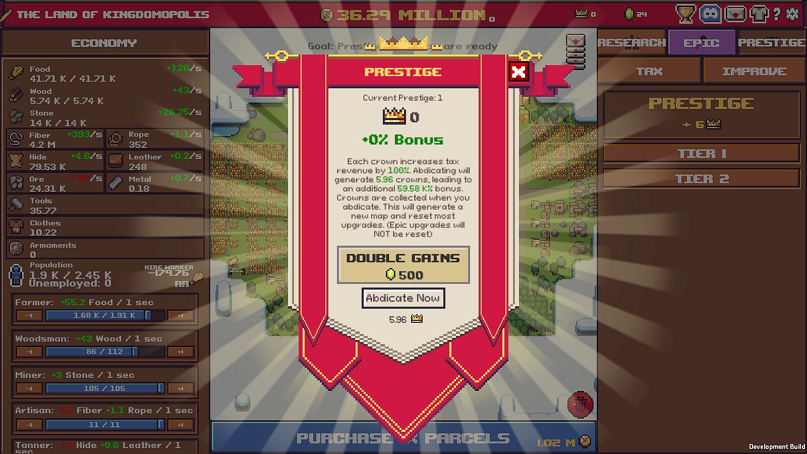 Eventually, you will have to make hard decisions about whether to invest exorbitant sums of money in price-gouged real estate or invest exorbitant sums of money in price-gouged upgrades. If that becomes too rich for your blood you can abdicate the thrown to gain powerful bonuses in a new land.So, are you ready to start building?