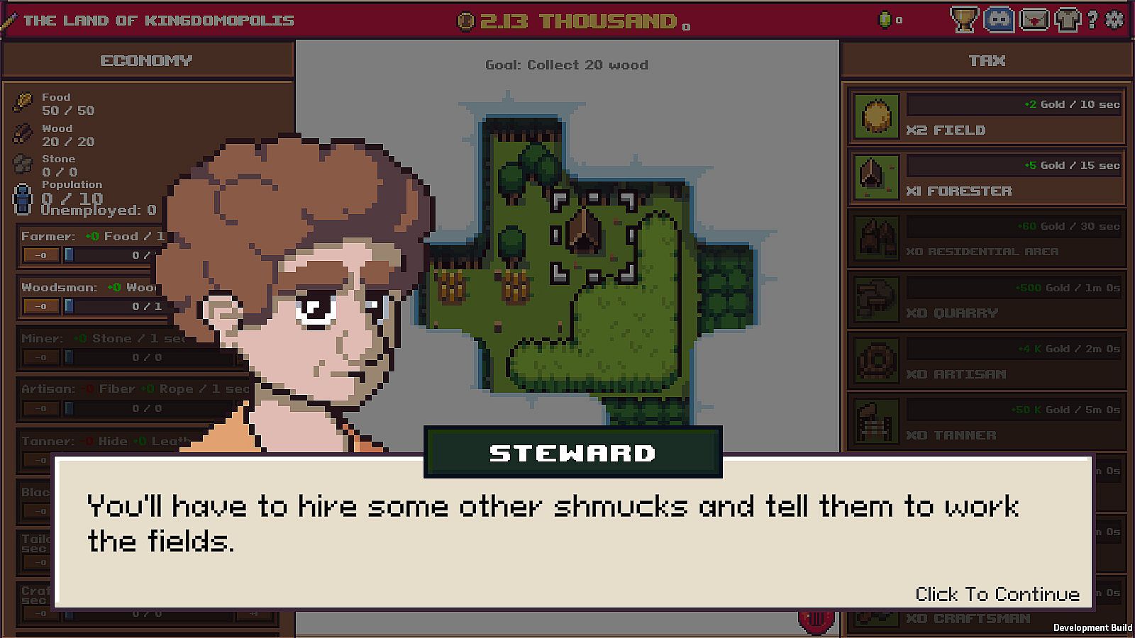 Each building increases your worker capacity and resource storage. Invest in upgrades to increase profits or improve the buildings to cram more peasants in.Balance your economy