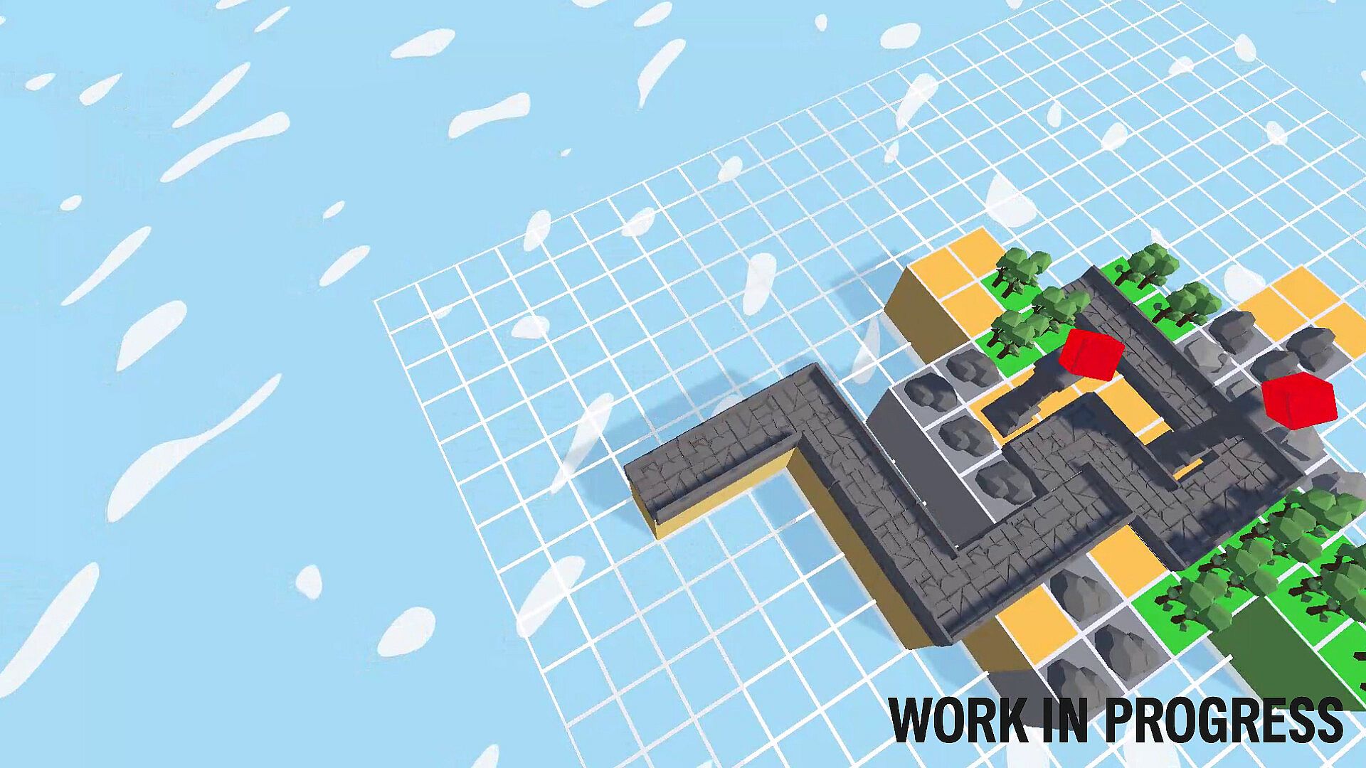 Each zone includes preset roads and varying terrain elevations. Zones must connect to existing paths, making every placement a tactical decision.