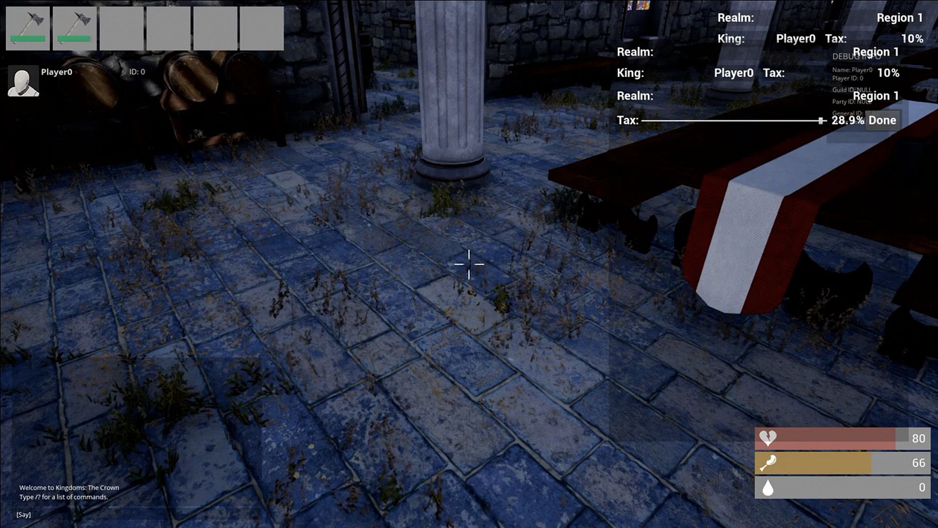 The combat system will be a major feature in Kingdoms. The player will be able to perform different moves against their opponent, and the player with more skill will win. The combat system will be similar to Chivalry: Medieval Warfare and Mordhau.