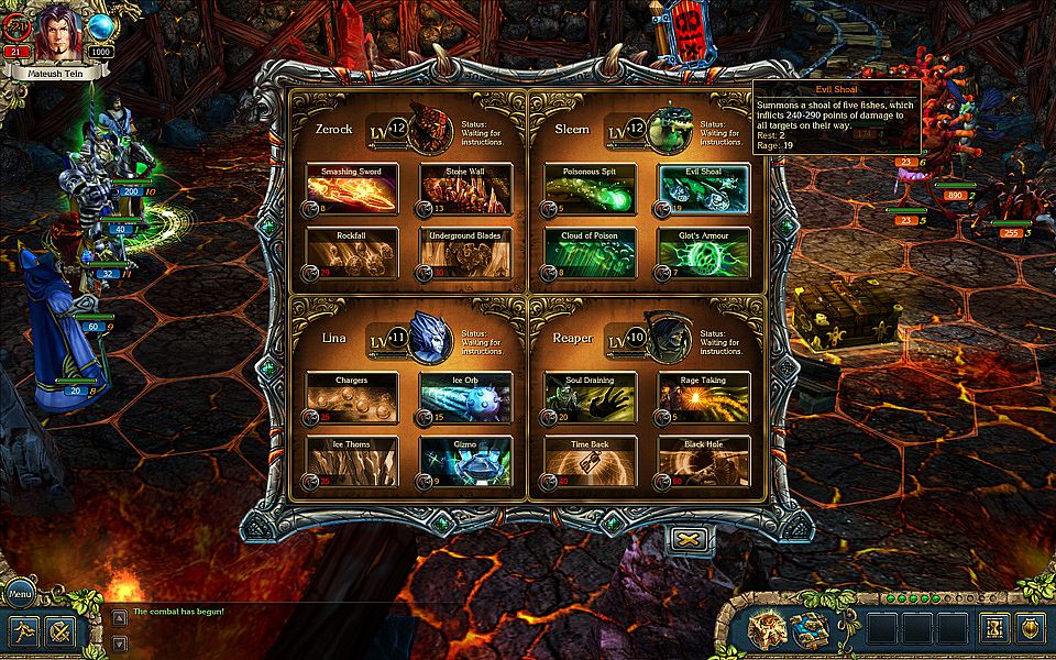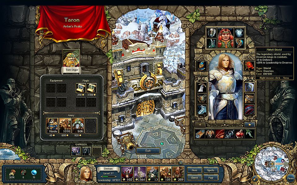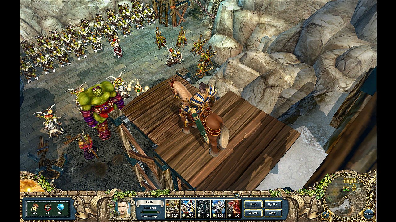 Gameplay is divided into two major sections: adventure mode and battle mode. While playing in adventure mode the gamer controls their character in real-time. With several classes available at the start of a new game, the player moves through the adventure map seeking various treasures, fighting monsters and accomplishing quests tasked to him by the local stewards. Once in battle mode the gamer assumes the role of a war chief, leading his troops in tactical turn-based combat. Battles take place on land or sea, in dungeons or castles or even in some items! The hero himself doesn't participate in the combat, but can assist his troops by casting spells or summoning different creatures.