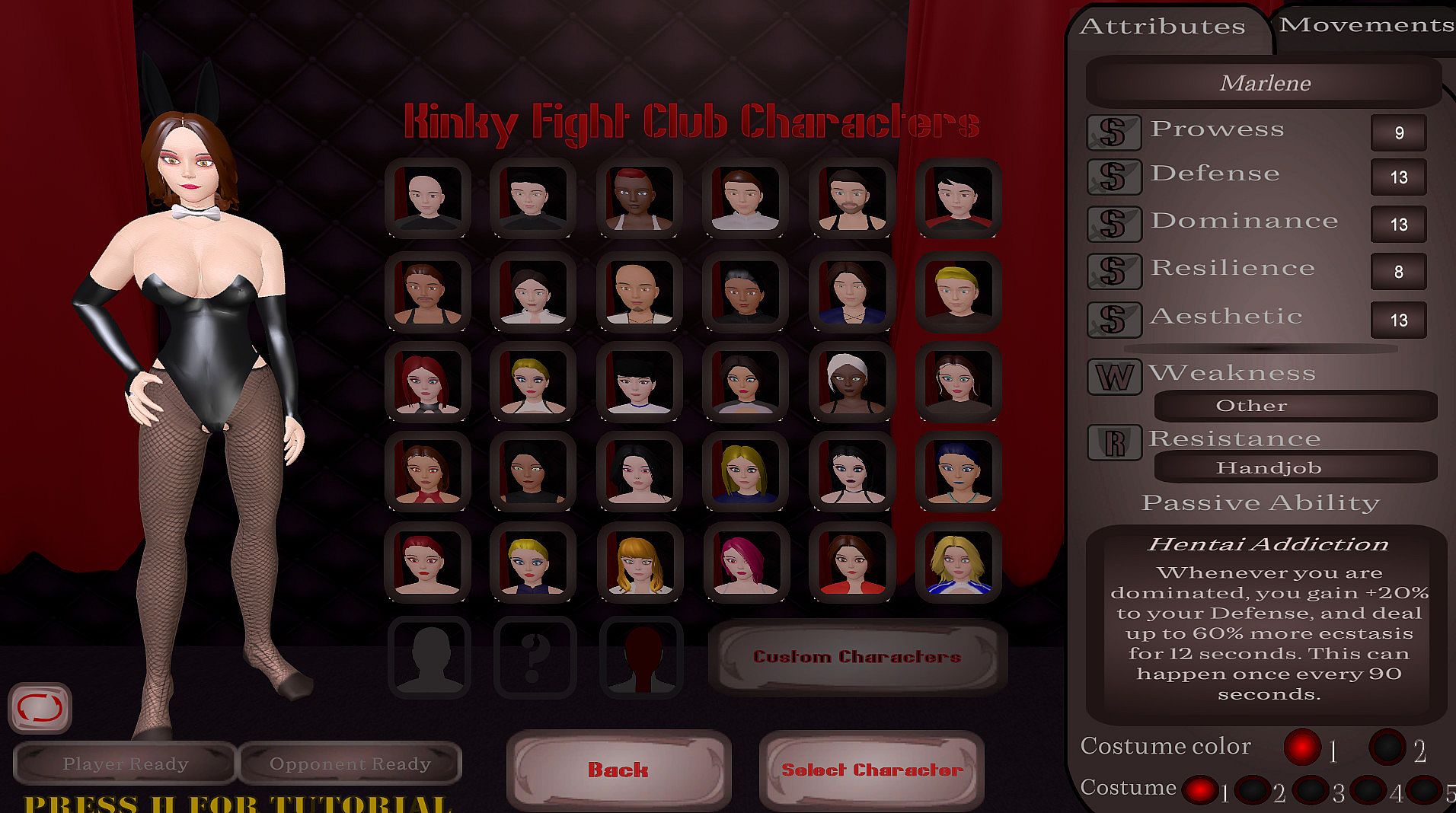 Kinky Fight Club is a 3D adult RPG about competitive sex matches. Imagine a sport where you and your opponents fuck, and whoever orgasms first loses!