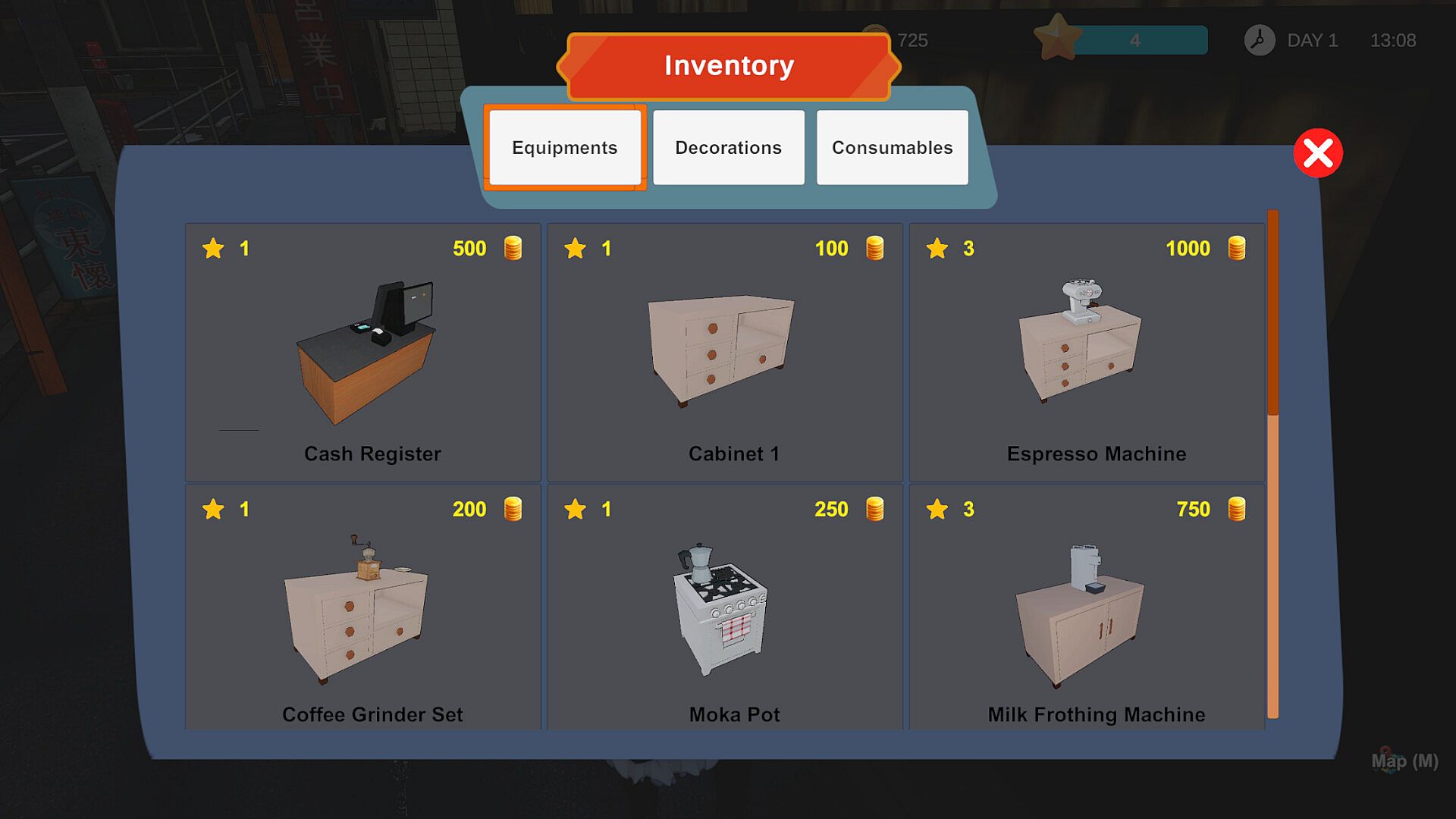 Purchase an automated grinder, upgrade to a state-of-the-art espresso machine, or even set up self-checkout kiosks for customers. With your dedicated assistant, Ayame, by your side to help you build a successful business, you have everything you need to succeed.