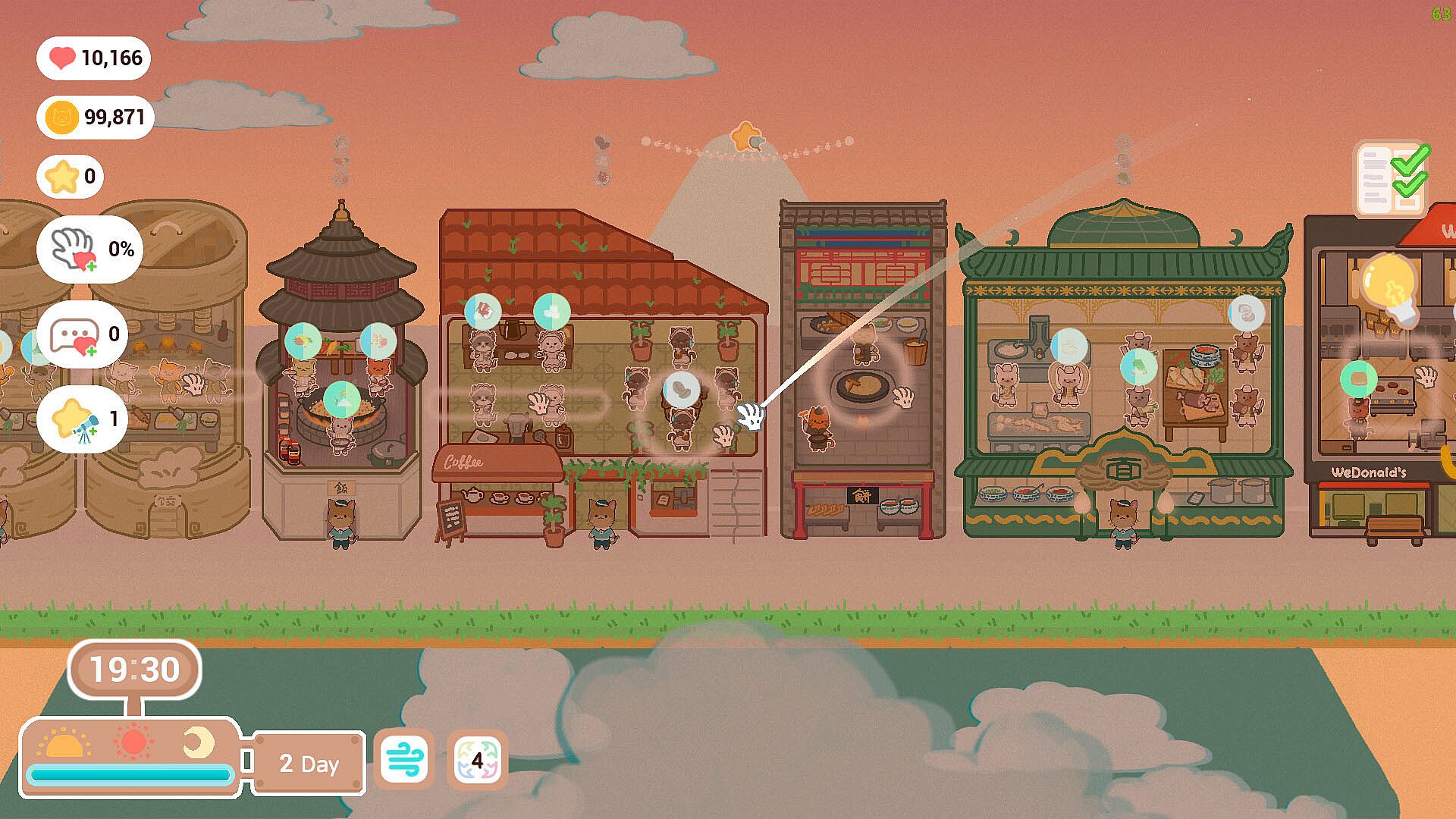 Pet cats to produce food in this casual management sim. Open shops like popsicle stands, dumpling spots, or jianbing guozi outlets, then tweak recipes based on customer input to draw more visitors. Spend cat coins to build stores, earn coins and love through daily petting sessions, and unlock tools that automate the process across five levels. Charming animations and sounds enhance every petting interaction, while props boost efficiency for smoother operations. Simple goals keep things relaxed, with no complex strategies or time pressure. Players seeking quick, stress-free sessions of about 1.5 to 2.5 hours will find a perfect fit.