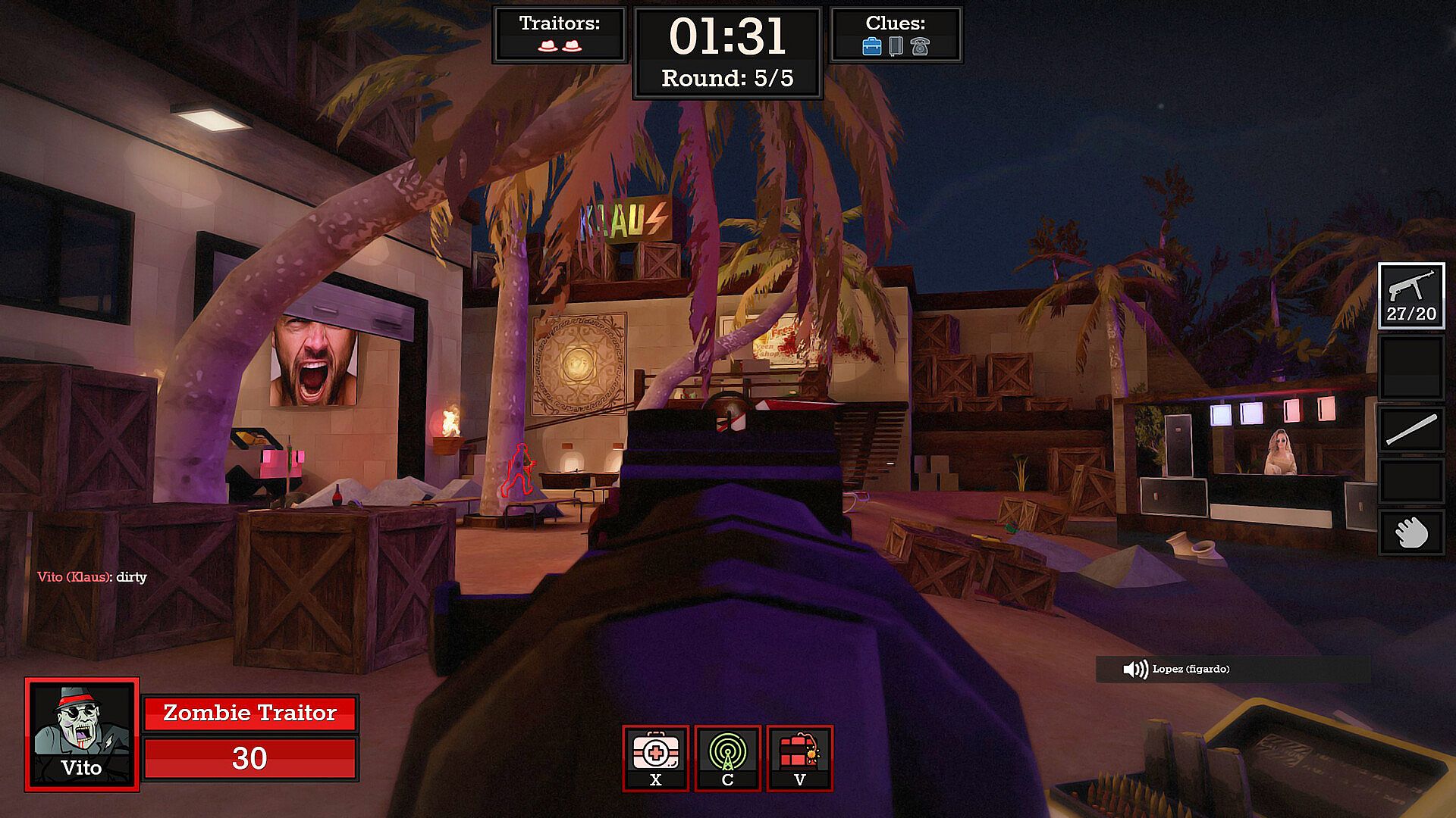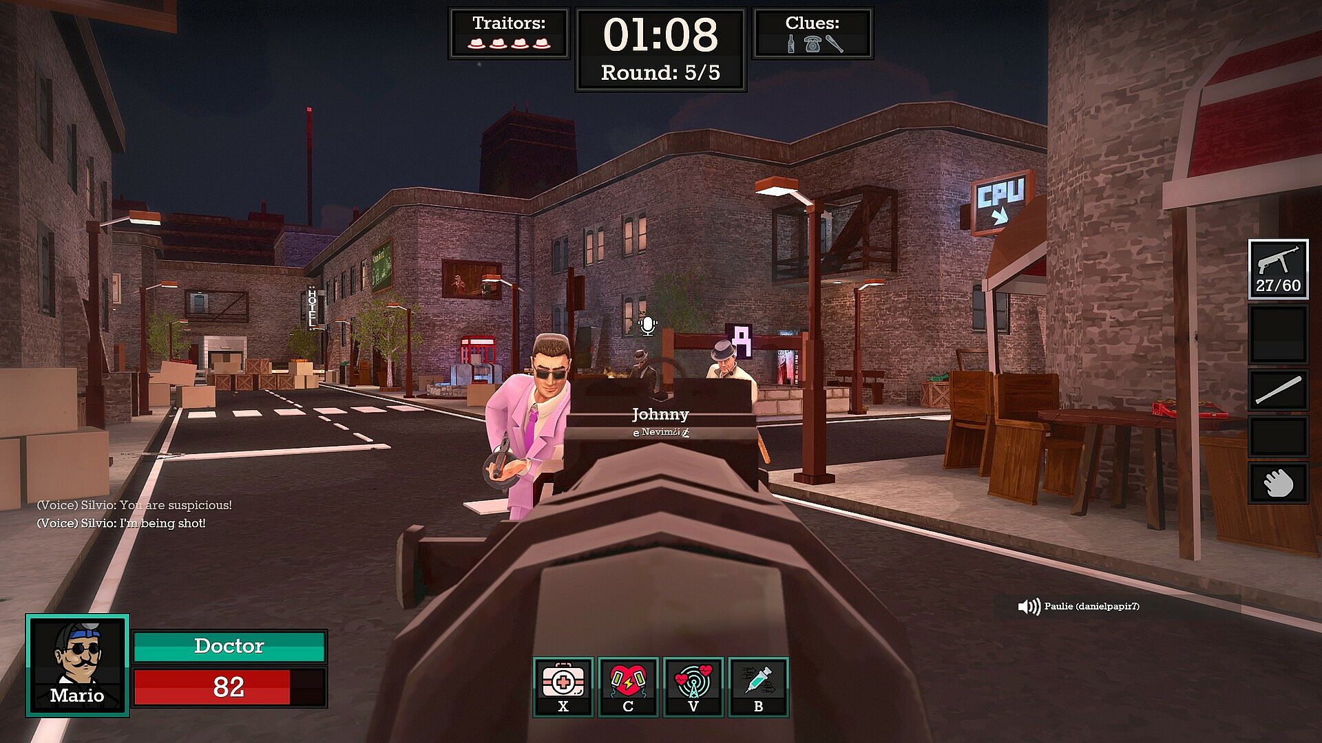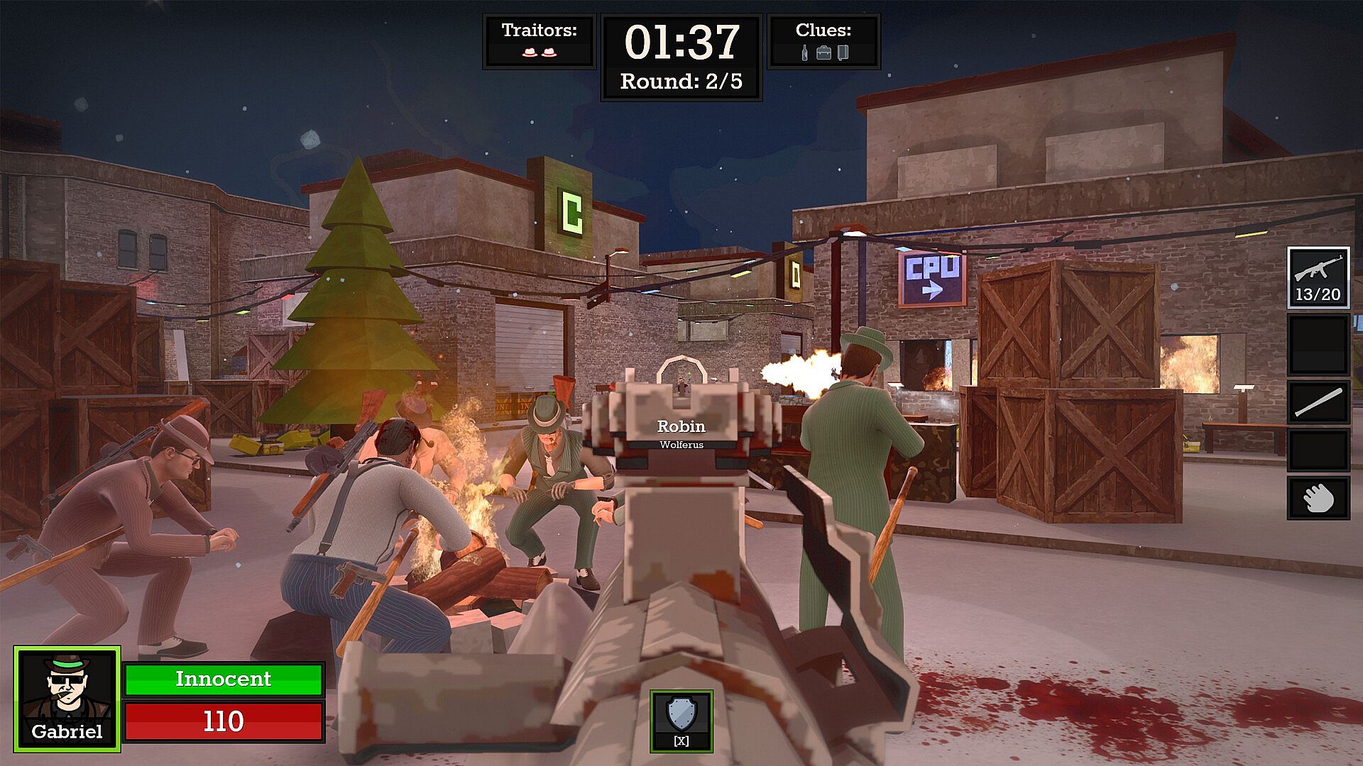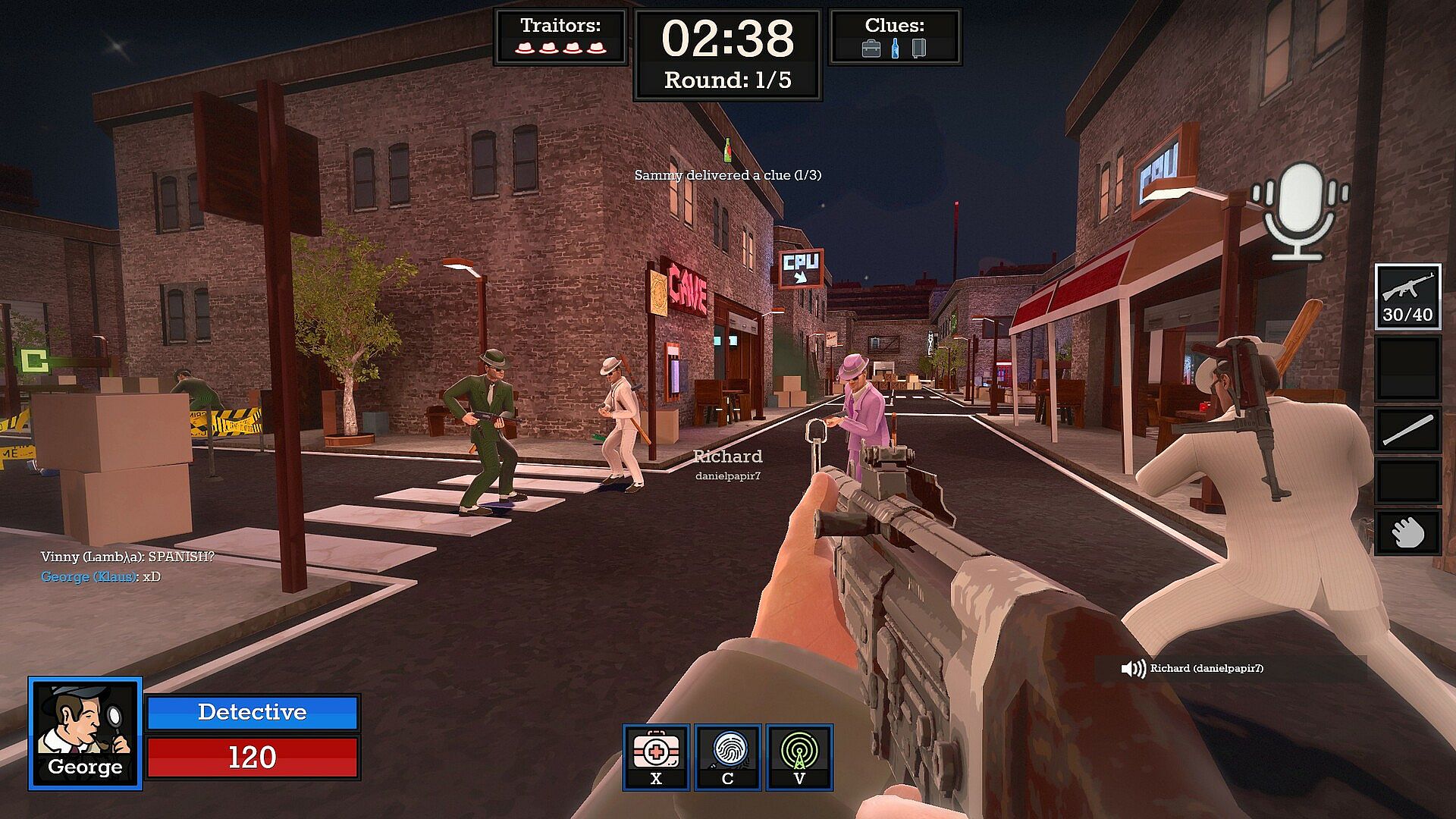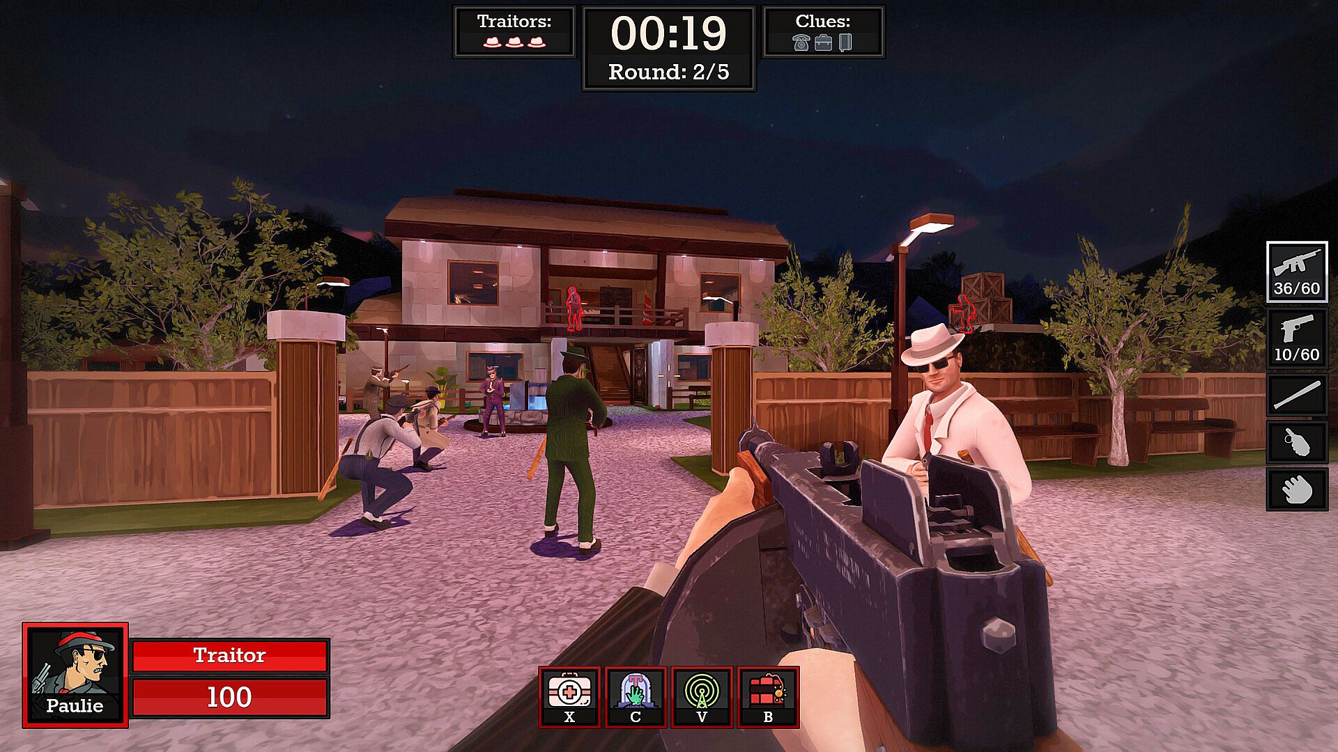 At the start of each round, the Don's body appears. When a player discovers it, Clues spawn across the map for players to collect. Delivering enough Clues to the C.P.U. reveals a Traitor. Beware: Traitors can sabotage the C.P.U. by shutting off its power supply!
