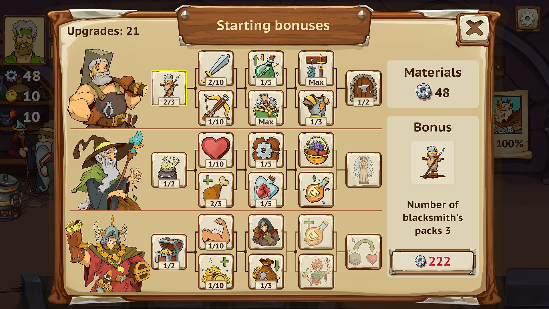 Restore the castle’s ancient halls to receive bonuses before every new raid.